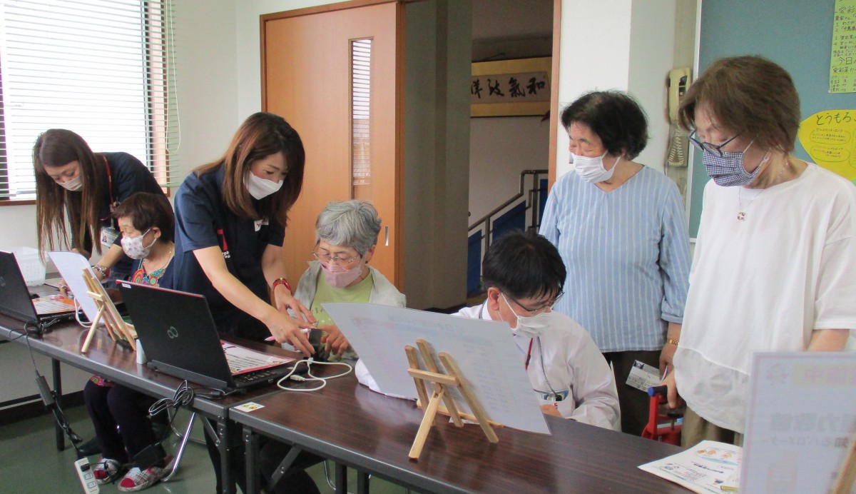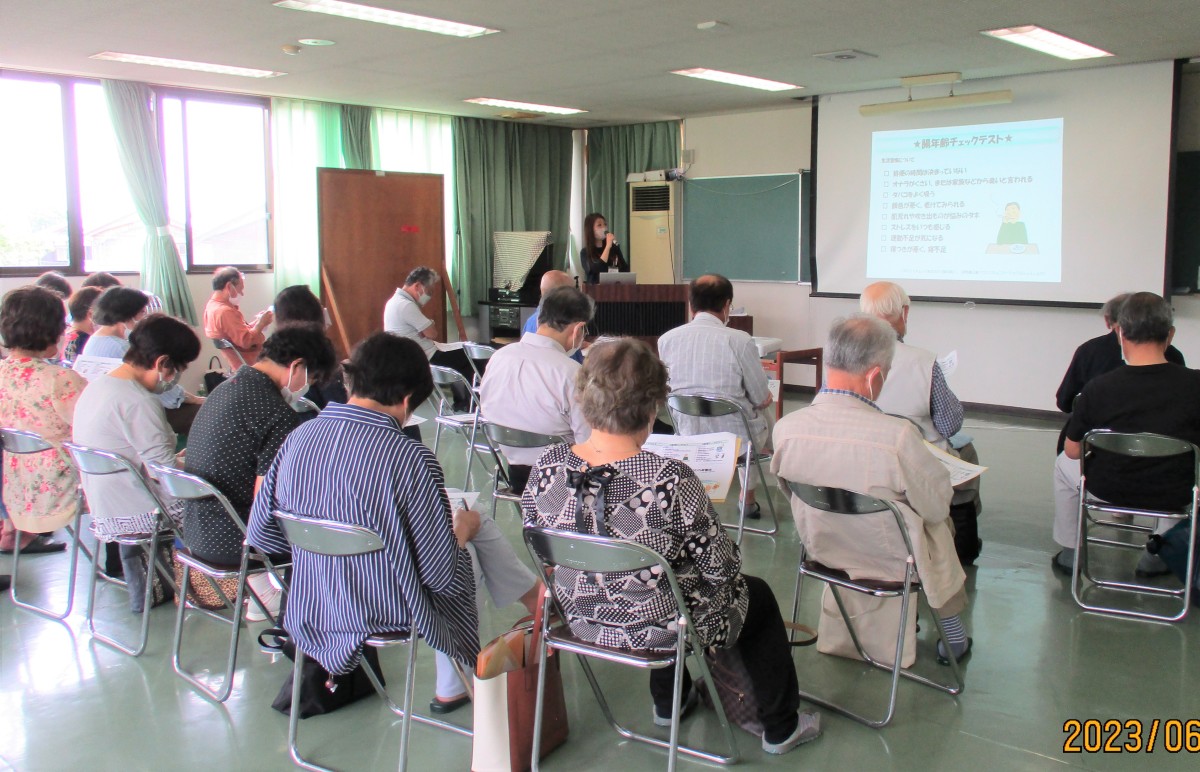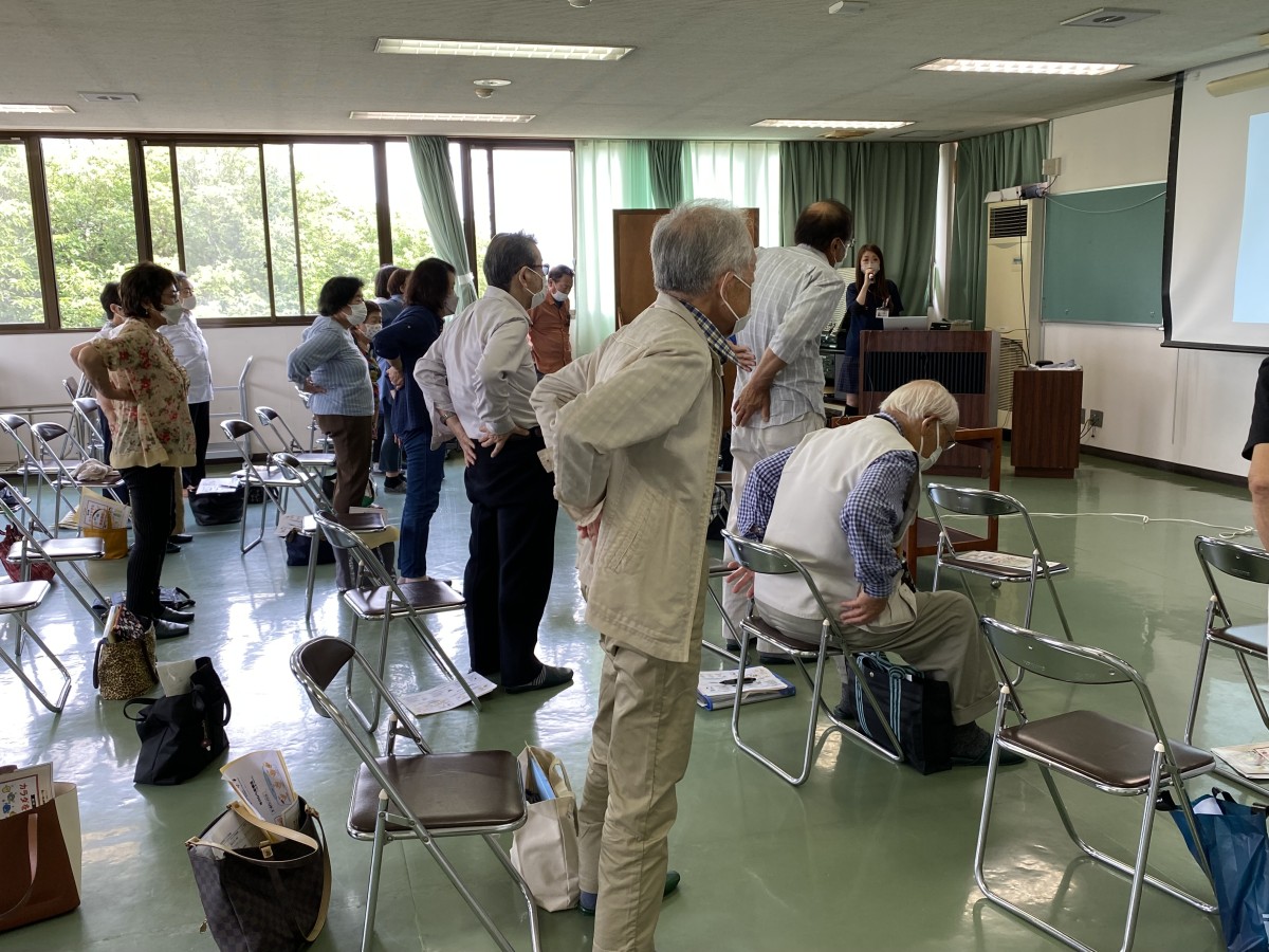 まずは血管年齢測定と握力測定です。実年齢より若いと結果が出た人は嬉しそうでした。お話は健康な生活を永く続けていくために自分を知るためのクイズから始まり、腸の健康状態を知った後は、食べたものの消化時間や腸の長さ、腸内に住む細菌の数は100兆個あるなど、おなか豆知識を教えてもらいました。その後は「おなか元気体操」をして、リフレッシュ。少し熱くなったところへ冷たいヤクルトをいただきました。これから暑くなりますが、身体を大事にして、健康的な生活を送りましょう!次回第3講座は9月12日「落語」です。ご参加お待ちしています。