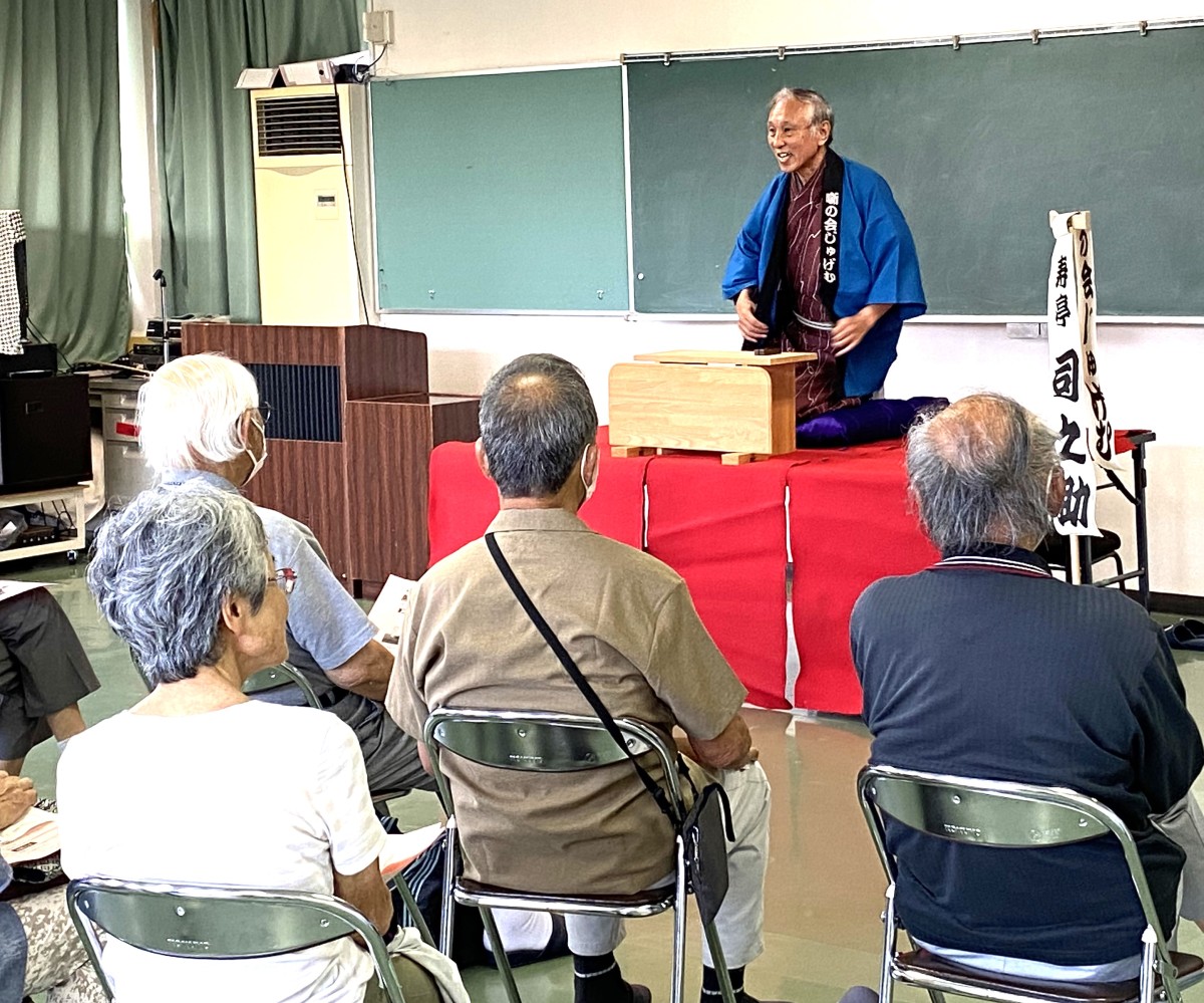 9月12日、「噺の会じゅげむ」の寿亭司之助さんと六弦亭ざくろさんに来ていただき、やすらぎ学級第3講座「落語」を開催しました。