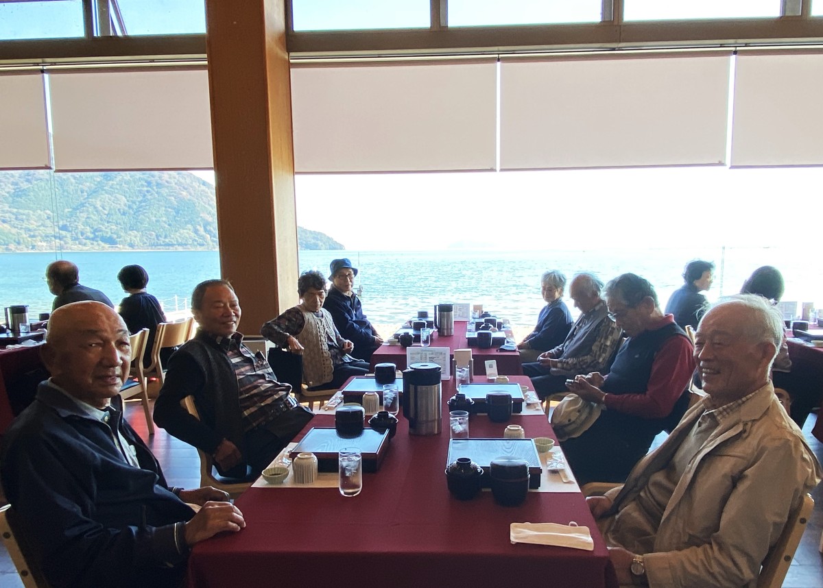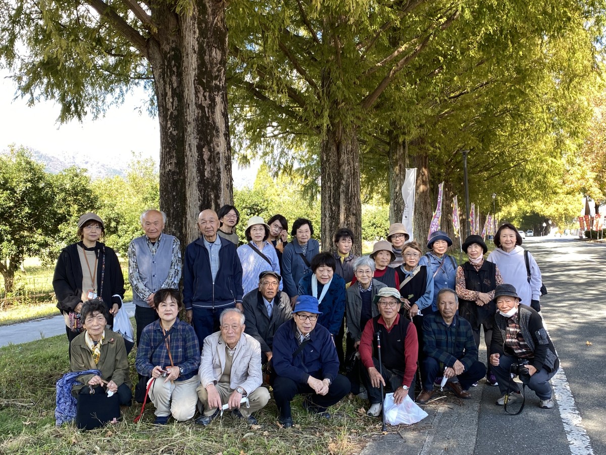 10月31日、高島市マキノ高原のメタセコイア並木を歩きに行きました。残念ながら紅葉には少し早かったようですが、晴天の中、エノコログサでウサギを作ったり、落ちたイガの中に栗を探したりと、思い思いに秋の高原を満喫していました。その後、奥琵琶湖マキノグランドパークホテルで琵琶湖を眺めながら、昼食を取りました。昼食後、湖岸を散策したのですが、水のキレイさや小魚が泳いでいたりするのを見て、「やっぱり琵琶湖って良いなあ」と思いました。バスの中は行きも帰りもしゃべり疲れること無い皆さんの楽しそうな声と、トイレ休憩に寄った先でのお土産でいっぱいでした。