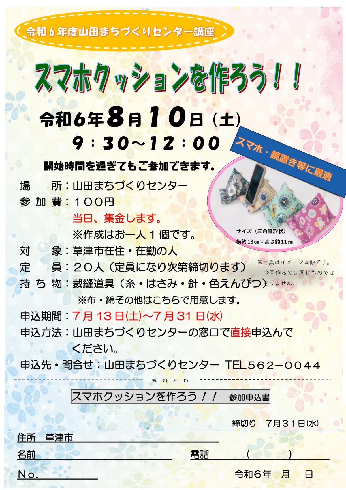 令和6年度センター講座「スマホクッションを作ろう!!」受付中