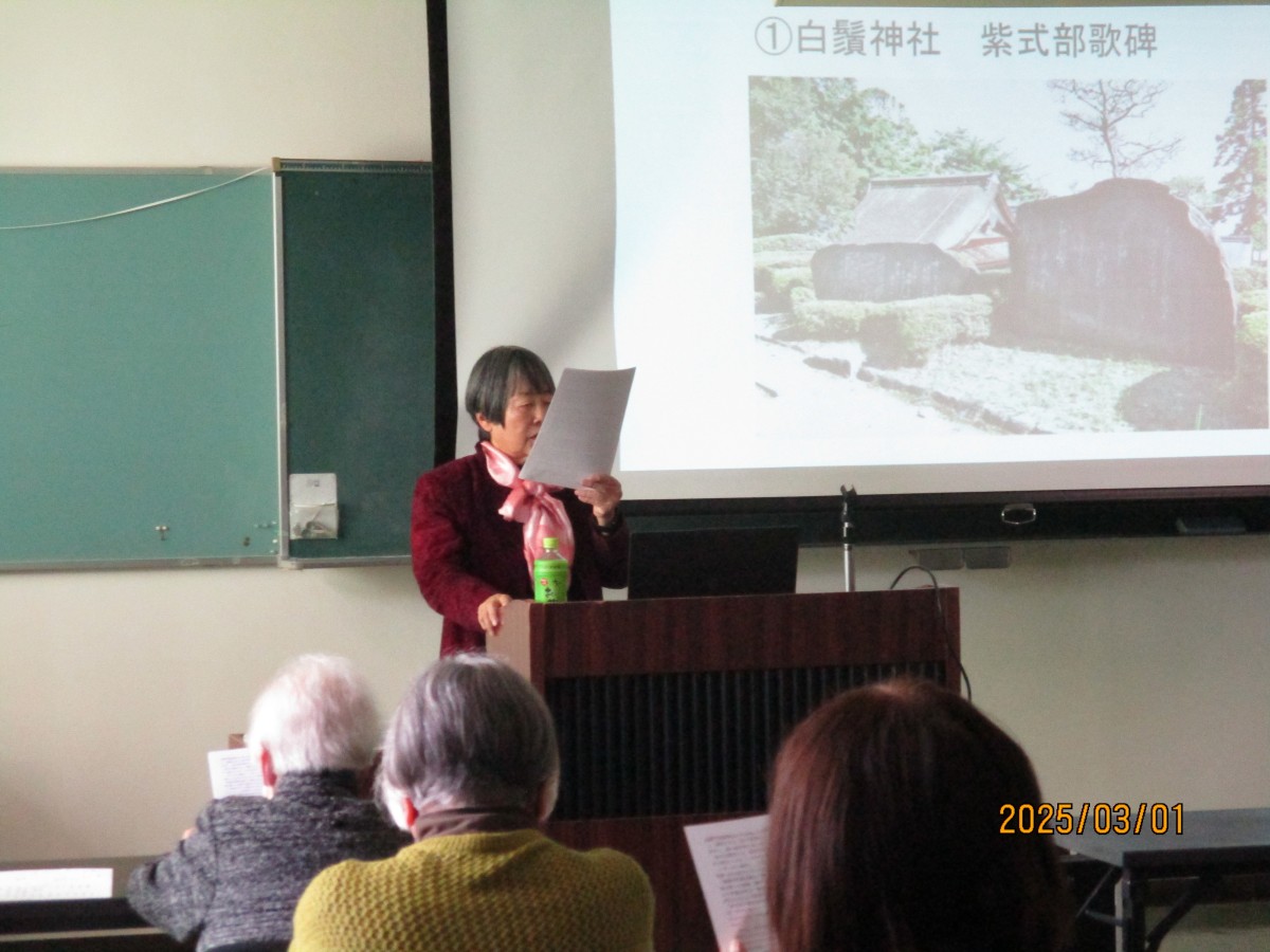 また、先生は近江の文学研究者として、ご自身の目と足を使って和歌や俳句など滋賀ゆかりの地を見て回られており、滋賀のいたる所に歌碑が有ることを教えて頂き大変驚きました。