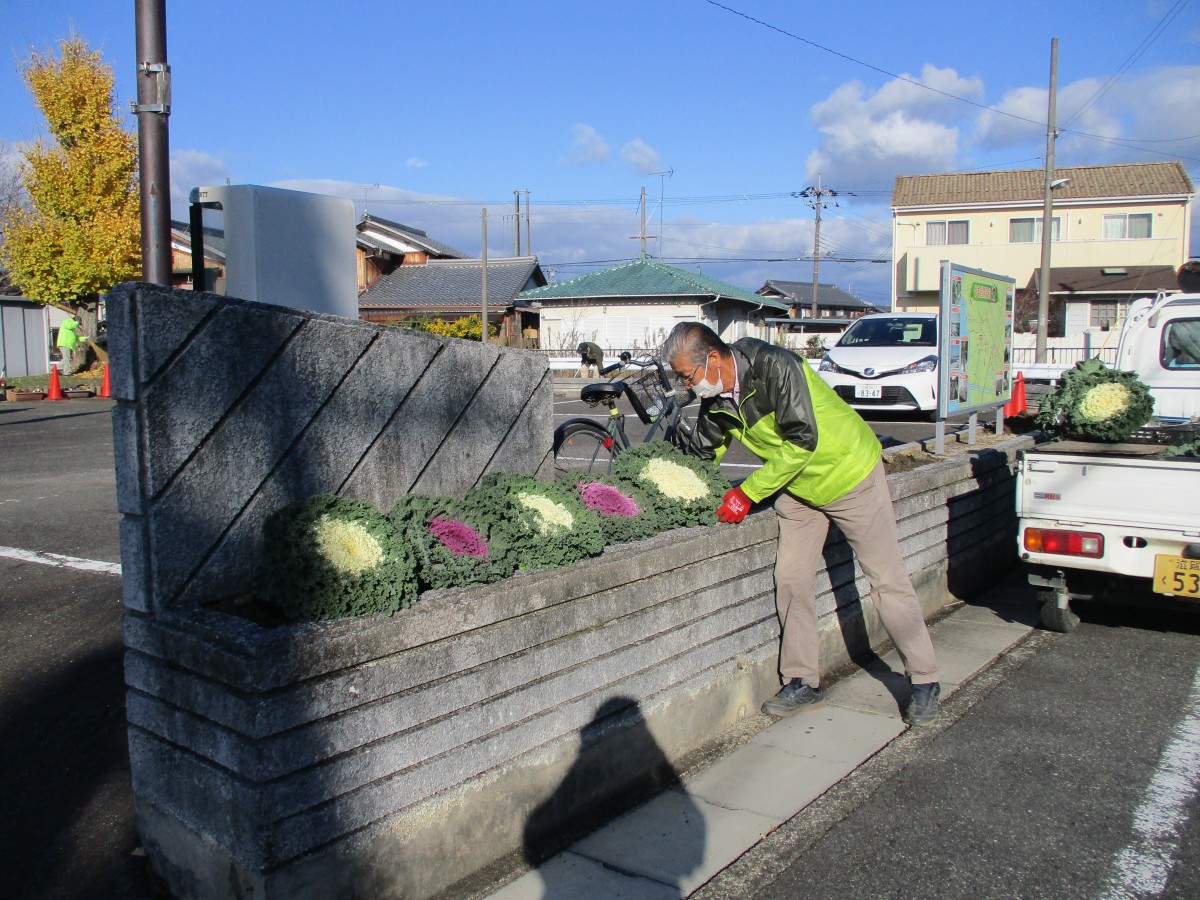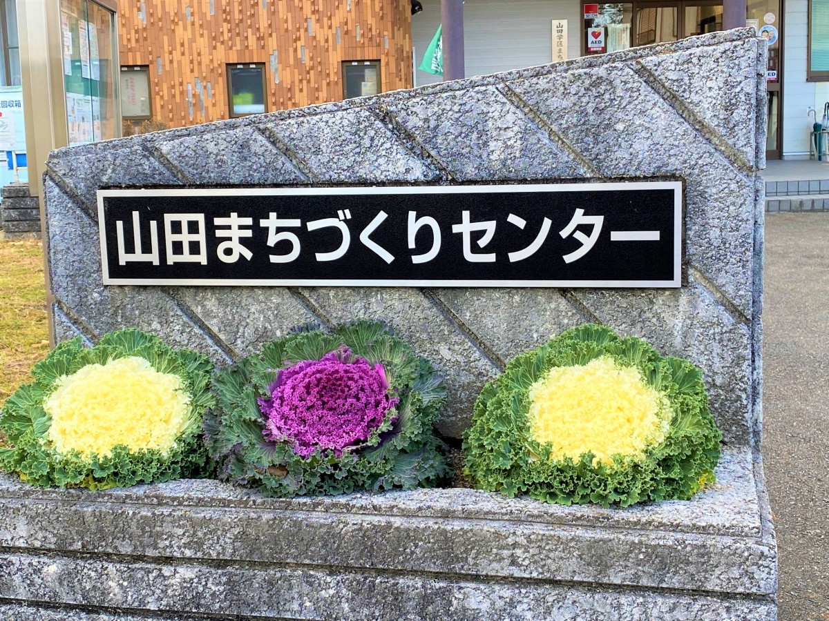山田まちづくりセンターなどに葉牡丹を植えています。