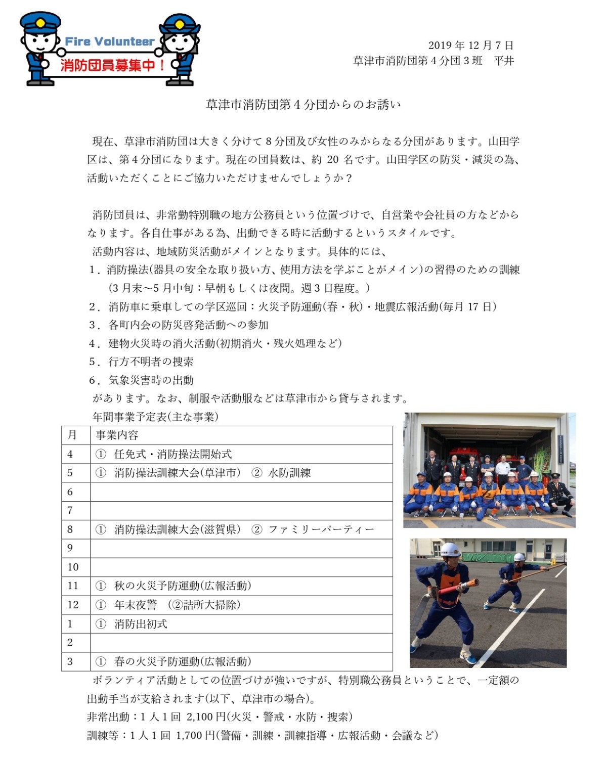 草津市消防第4分団からのお誘い