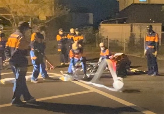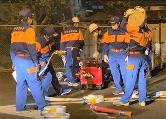 令和4年5月22日(日)に西消防署で開催されるポンプ操法大会に向けて草津市消防団第4分団の皆さまが、武道館の駐車場で訓練されていました。 操法訓練を通して消防団員としての規律や知識・技術を身につけるそうです。