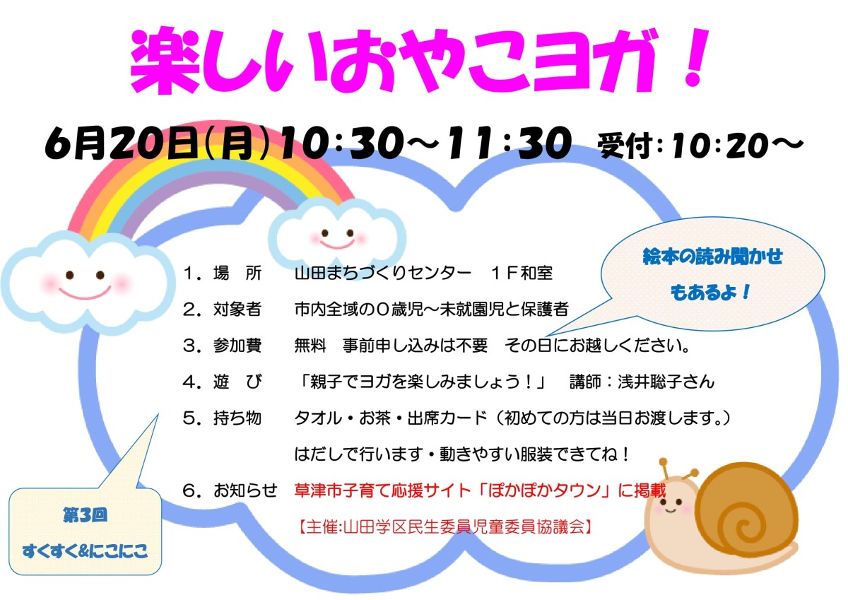 6月のすくすくランド&にこにこサロンは、親子でヨガを楽しみましょう![]()