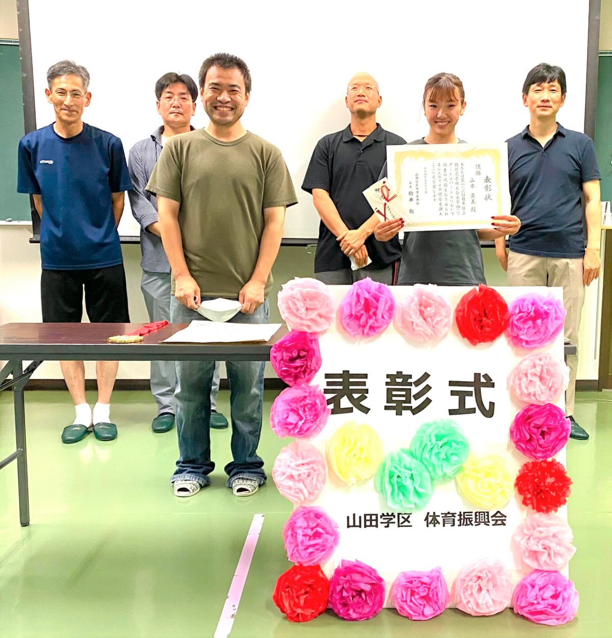 山田学区では、スポーツの普及促進に繋げるため、スポーツで優秀な成績をおさめられた方の表彰を行います。