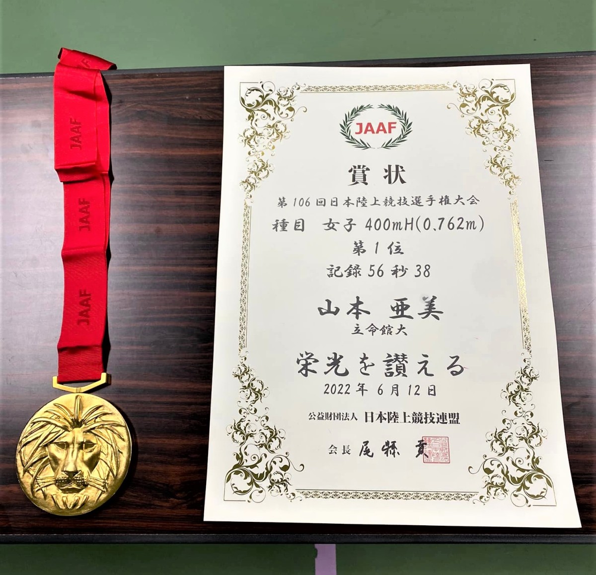 第106回日本陸上競技選手権大会 女子400mハードルで山本亜美さん(立命館大)が優勝されました。