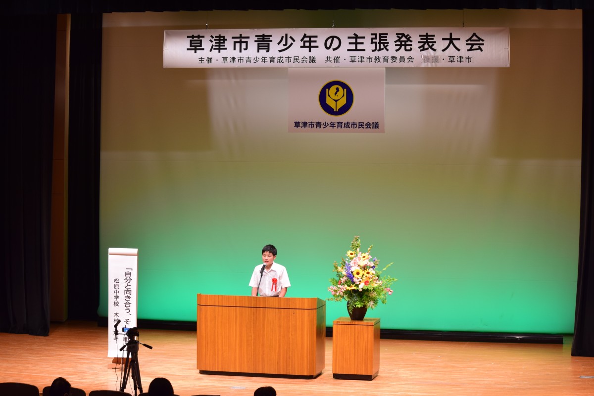 私はこのたび、青少年の主張発表大会において「自分と向き合う、そして戦う」というテーマで、自分の思いに正直になる大切さや、普段から大事に思っていることについてお話しさせていただきました。