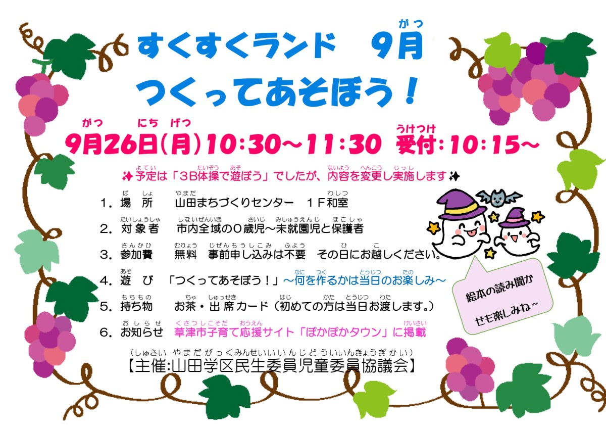 9月のすくすくランドは「つくってあそぼう!」を計画しています![]()