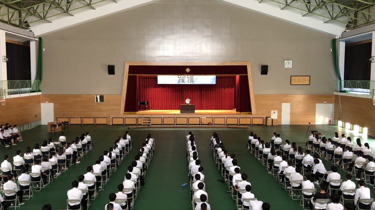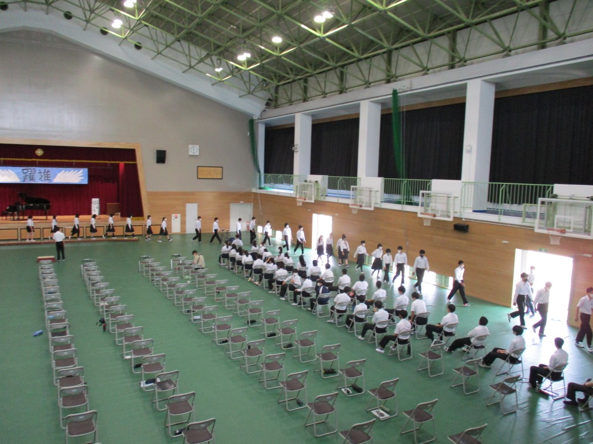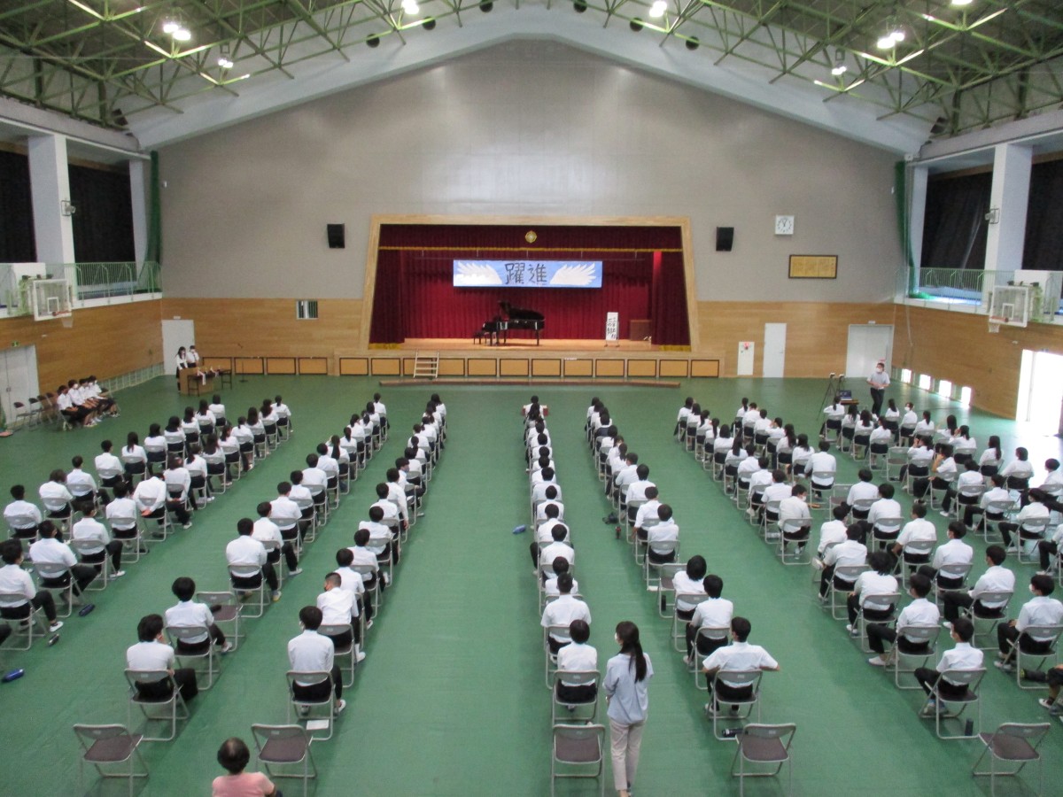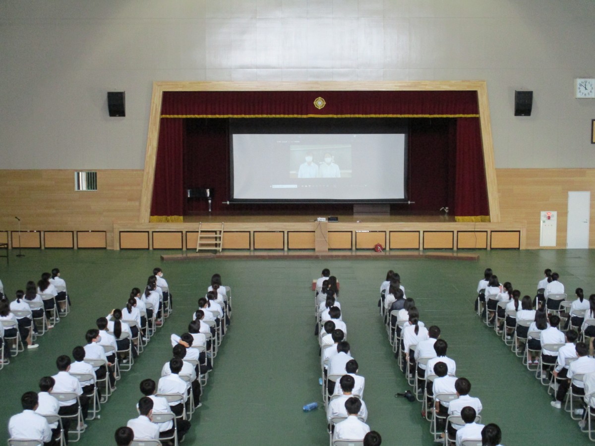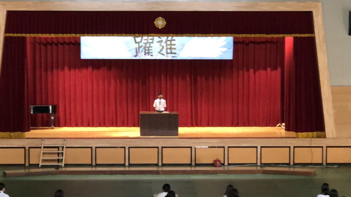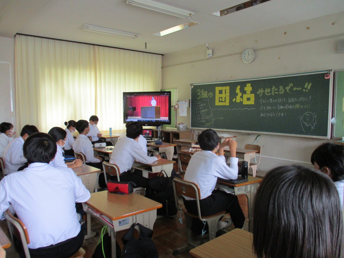 合唱後は、吹奏楽部の演奏動画の鑑賞と、英語弁論大会出場者による熱のこもった発表がありました。