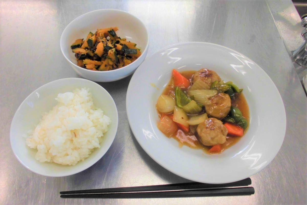 今回のメニューは豚こま酢豚、かぼちゃのみそきんぴらでした。