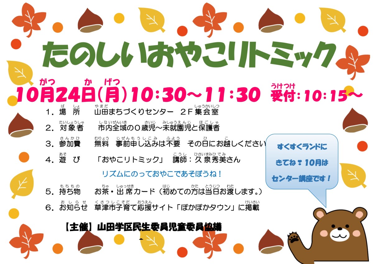 10月のすくすくランドは「たのしいおやこリトミック」でリズムにのって遊びましょう![]()