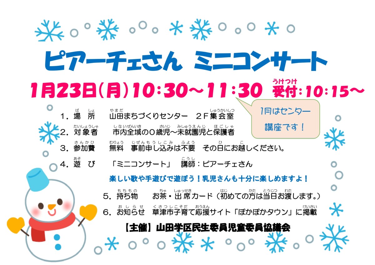 【予告】すくすくランド(1月)「ピアーチェさん ミニコンサート!」