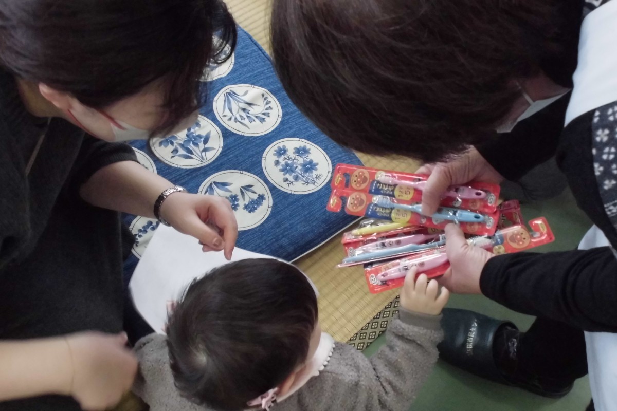 1月23日、すくすくランドの子供たちに歯ブラシを配布しました。