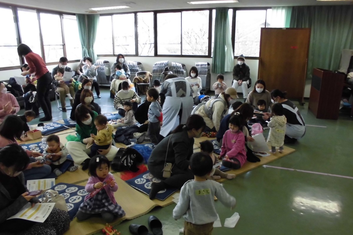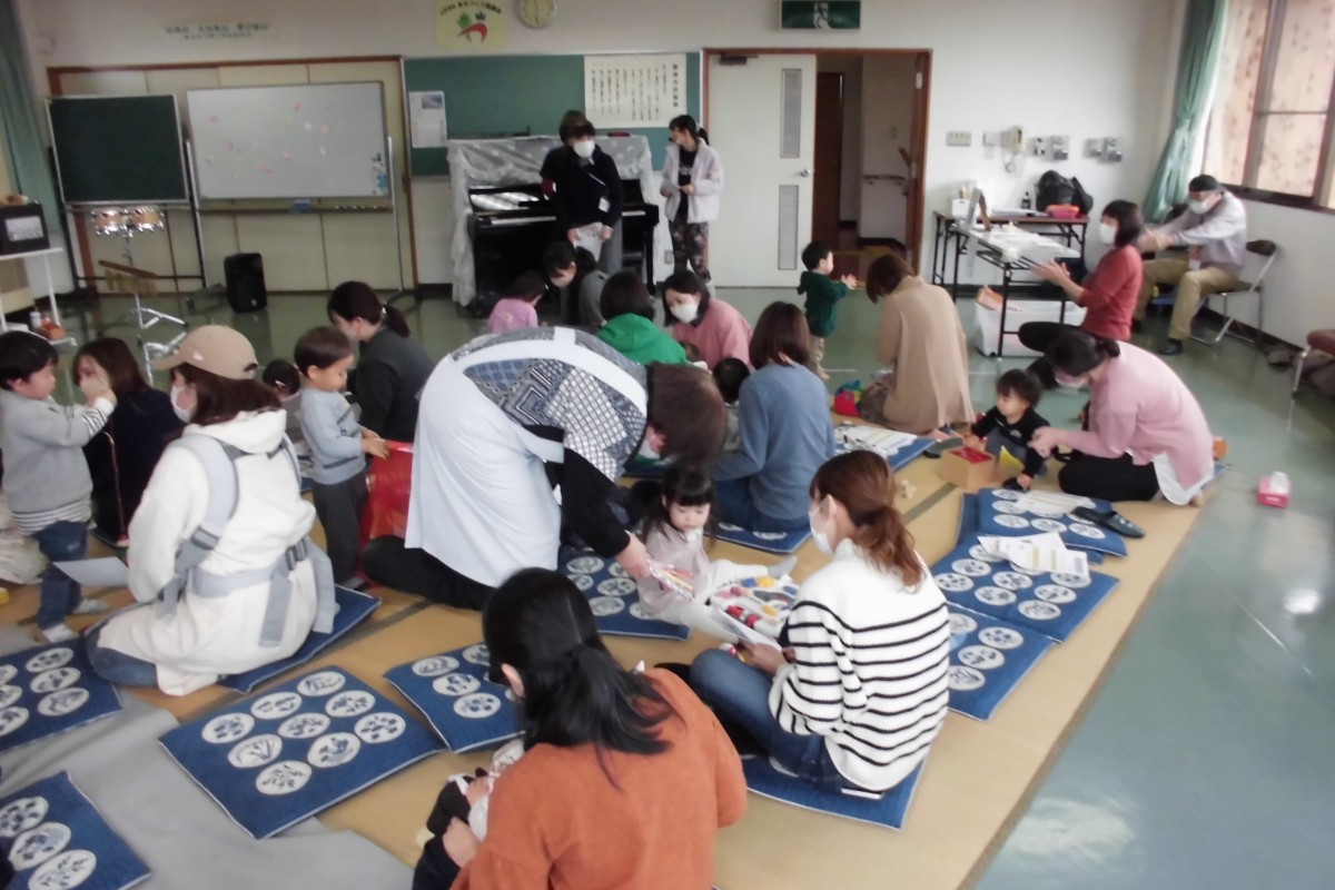 こども園に入る前の小さいお子様達に癒やされながら配布させていただきました。