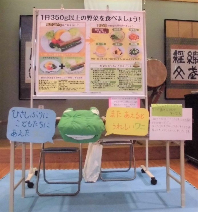 健康に関する資料を持ち帰っていただいた方、机の前に張り出したワニに興味をもってくれた子供さん。