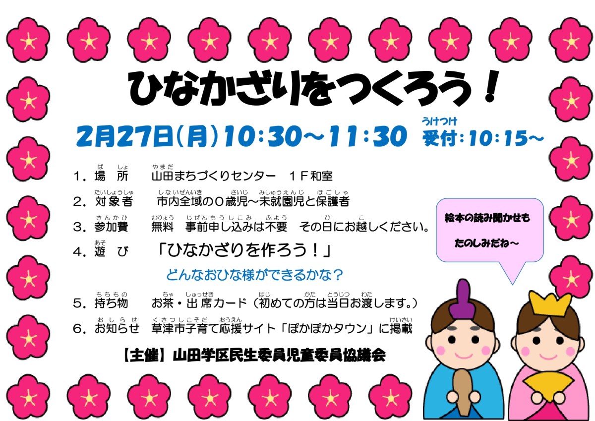 【予告】すくすくランド(2月)「ひなかざりをつくろう!」