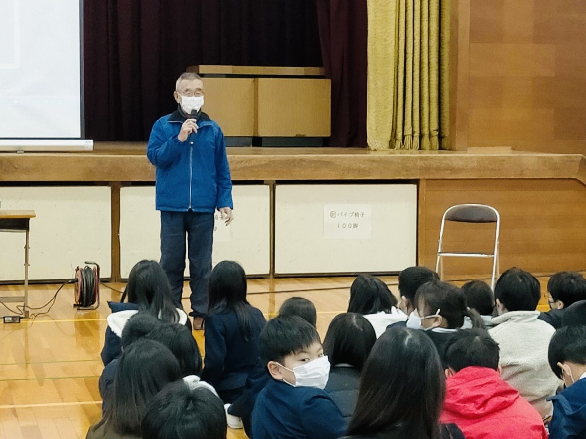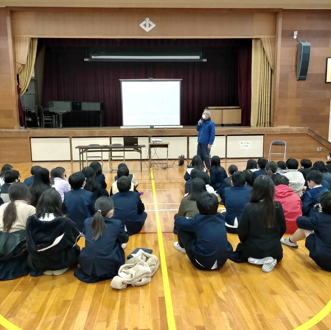 今年は、予定していた日が悪天候のため、乗船しての体験は実現しませんでした。でも、いきいき学習で、県の水産課や漁業組合の方々にお話を聞いたり、自分達で調べたりして、琵琶湖について学びました。生態系や魚の成長、湖底の掃除など、まとめたことを発表しました。1月27日の発表会には、組合長 横江久吉さんをお招きして、学習の成果を見ていただきました。5年生になれば、フローティングスクールで【うみのこ】に乗り、琵琶湖について学びますが、その時にこの学習が生かされることを願っています。
