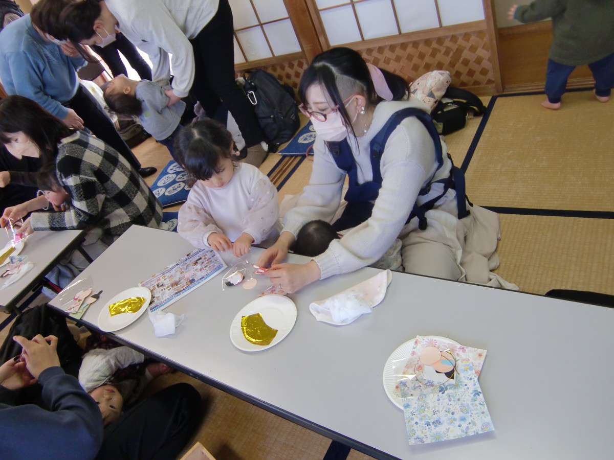 おひなさまの着物は千代紙で折りました。お母さんたちは「折り紙するの何年ぶりかな?!」とうれしそう~~![]()