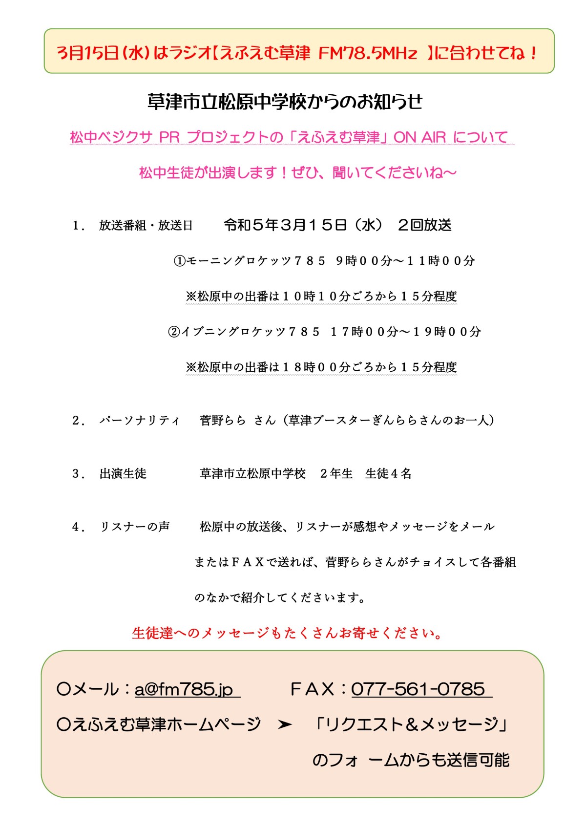 松中生徒が出演します!ぜひ、聞いてくださいね~!
