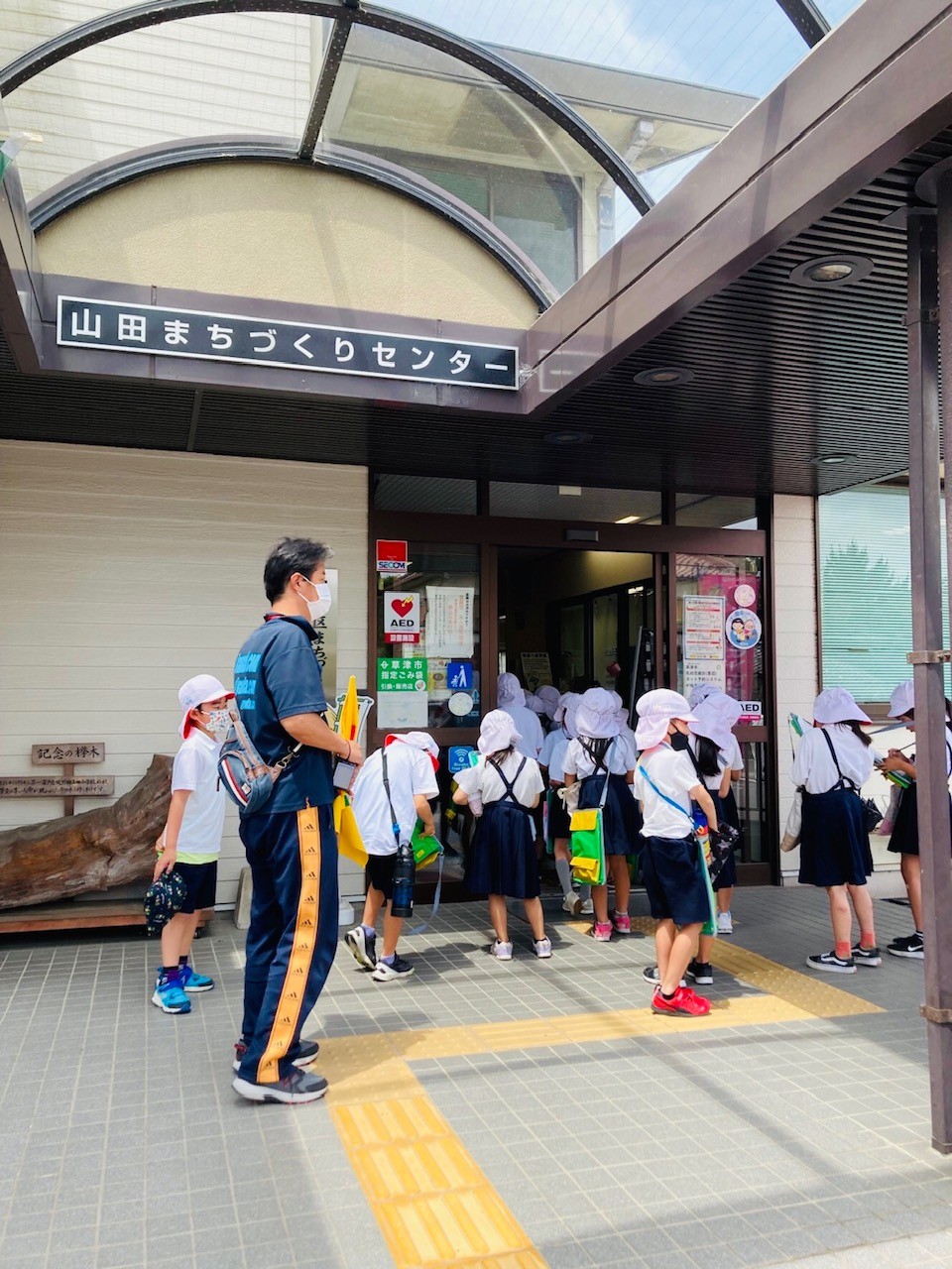 センター内では、和室や研修室、調理室、集会室(ヨガの教室の真っ最中でした)を見学、「前にメロンを買いに来た」とか「ふれあいまつりで来たことがある」とか言う子もいました。センター長中村さんからもお話をしていただき、地域に根ざした活動場所であることを認識したようです。【町たんけん】にたくさんの方々のご協力を得て、子ども達も山田のことを以前より詳しく知ることが出来たと思います。ありがとうございました。(地域コーディネーター 中島民恵)