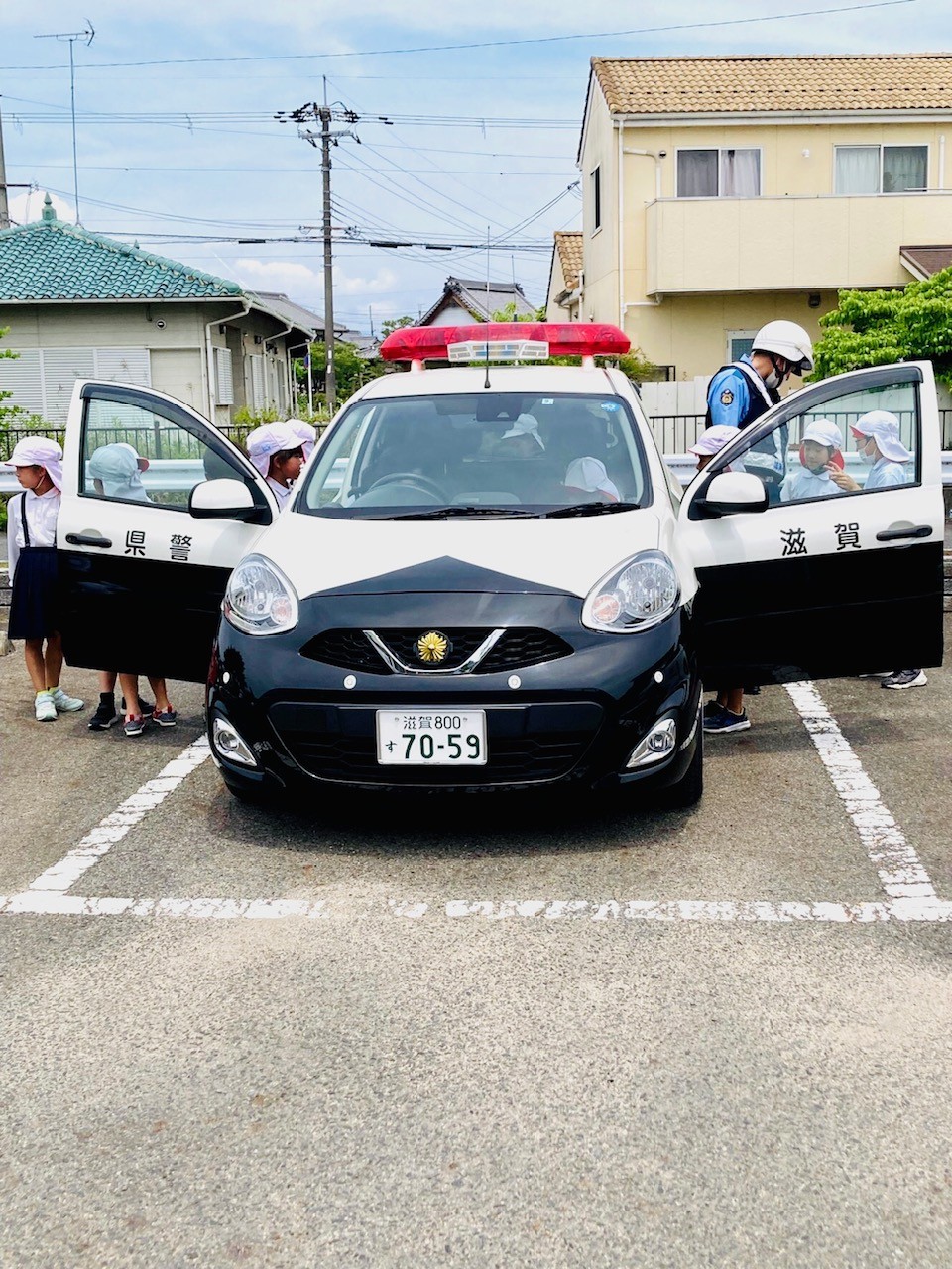 地域をパトカーでパトロールすることや、老人家庭の訪問、落とし物や道案内など困っている人の対応など、地域の安全のために仕事をしていることを知りました。その後、前半後半で交代しながらパトカーとセンターを見学してお話を聞きました。パトカー見学では、運転席に座らせてもらったり、装備品を見せてもらい、子ども達は興味津々の様子でした。