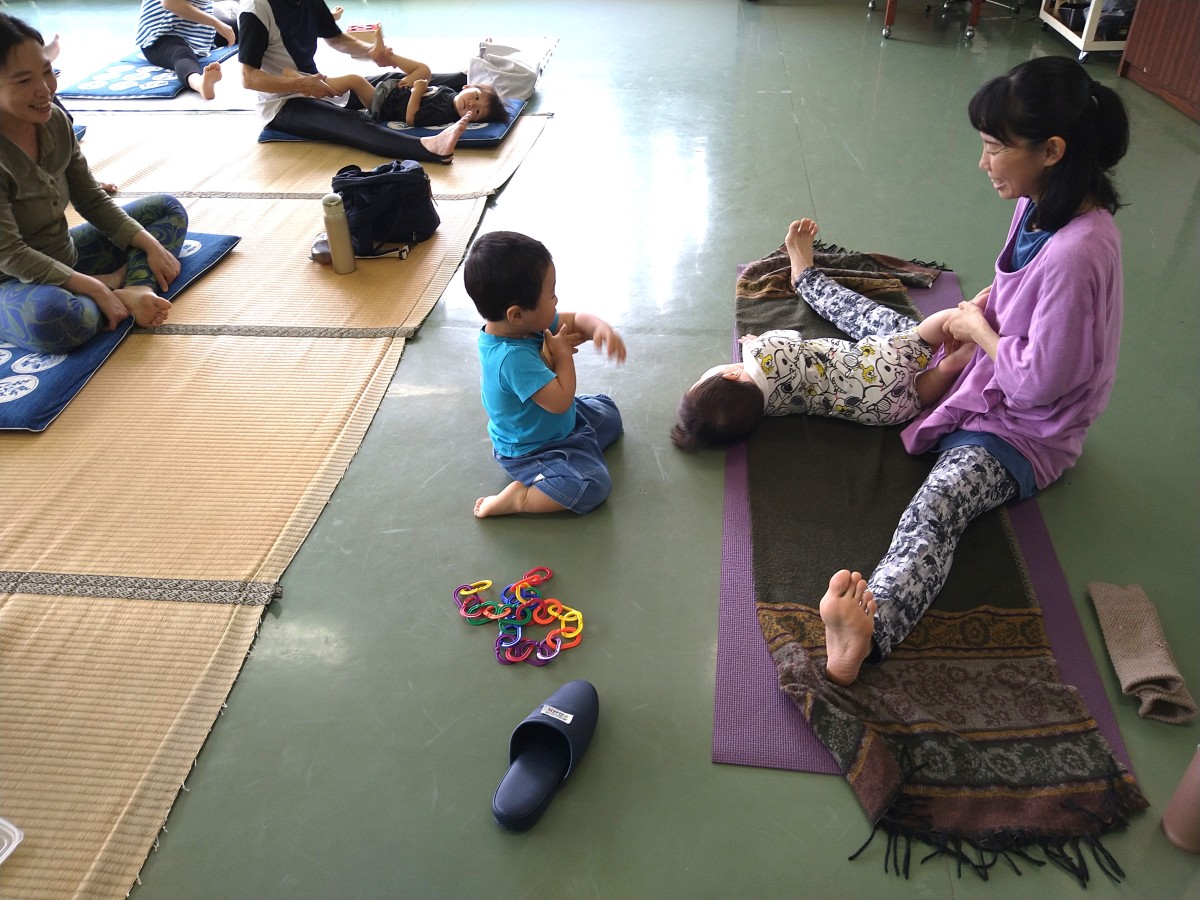 講師に浅井聡子先生を迎え、親子でヨガを楽しみました。子育て中のママ達はどうしても子どもを抱っこする動きが多く、同じような筋肉を使いがち。今日は、日頃あまり使わない腕や足をゆっくりと伸ばしたり、優しく筋肉をたたいたり・・・![]()