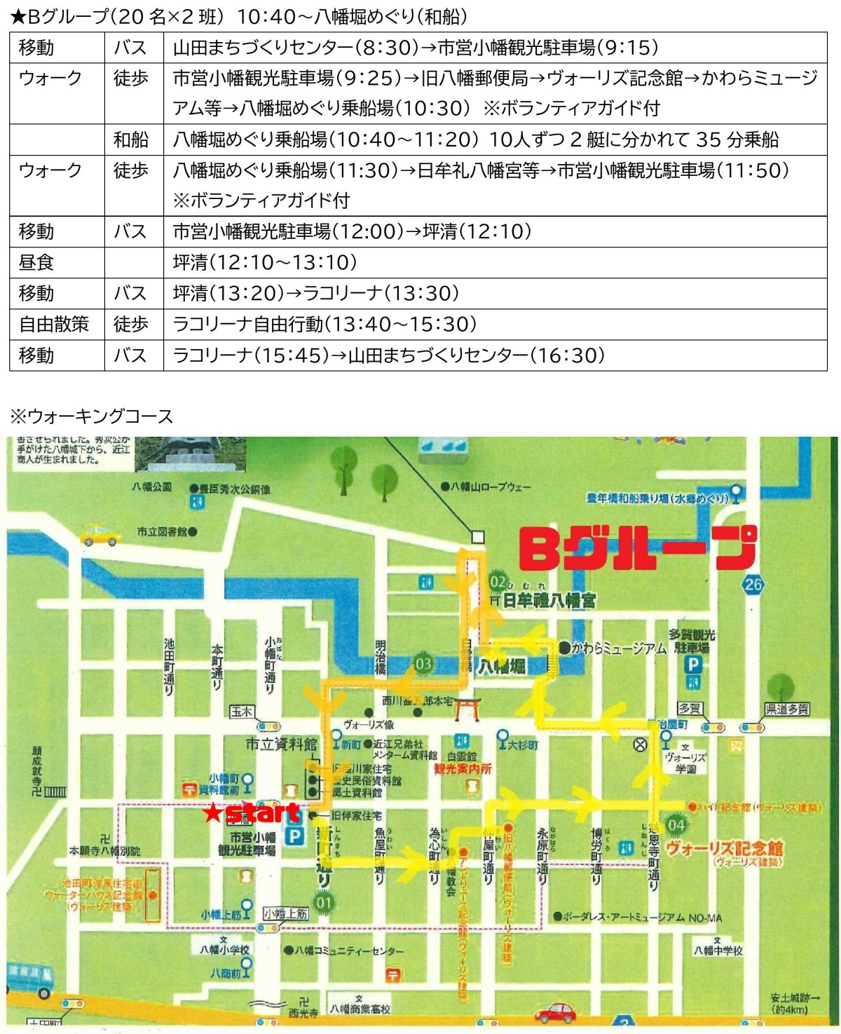 内容:ウォーキング(ガイド付)約4km(八幡掘・日牟礼八幡宮・旧八幡郵便局他)、八幡堀めぐり(和舟に乗ります)、ラコリーナ