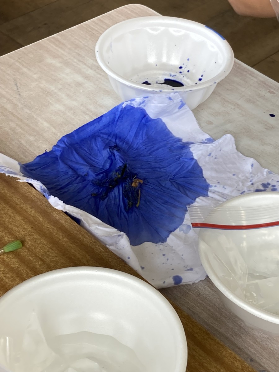 草津ではこのあおばな染めが長い間受け継がれてきたのですね。子ども達もこの体験をきっと覚えていてくれることでしょう!