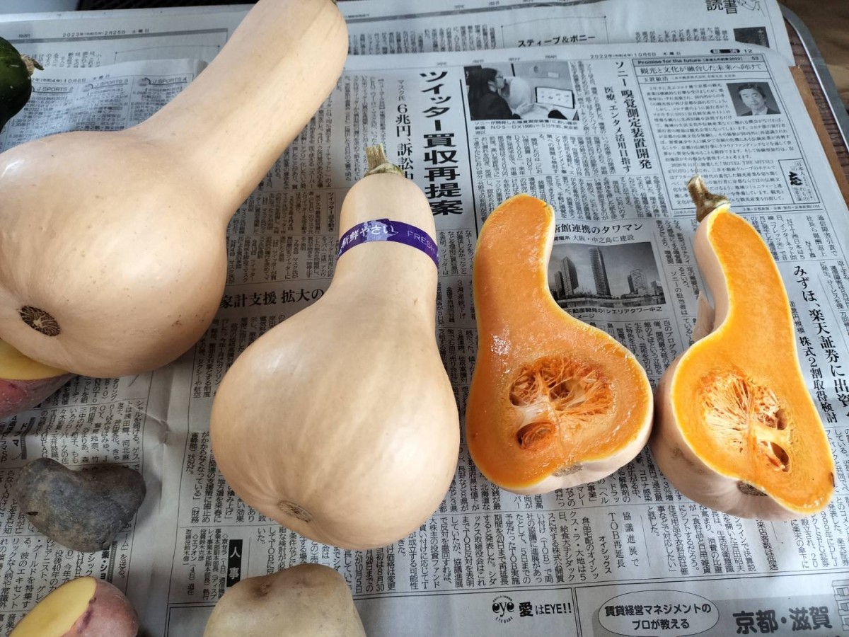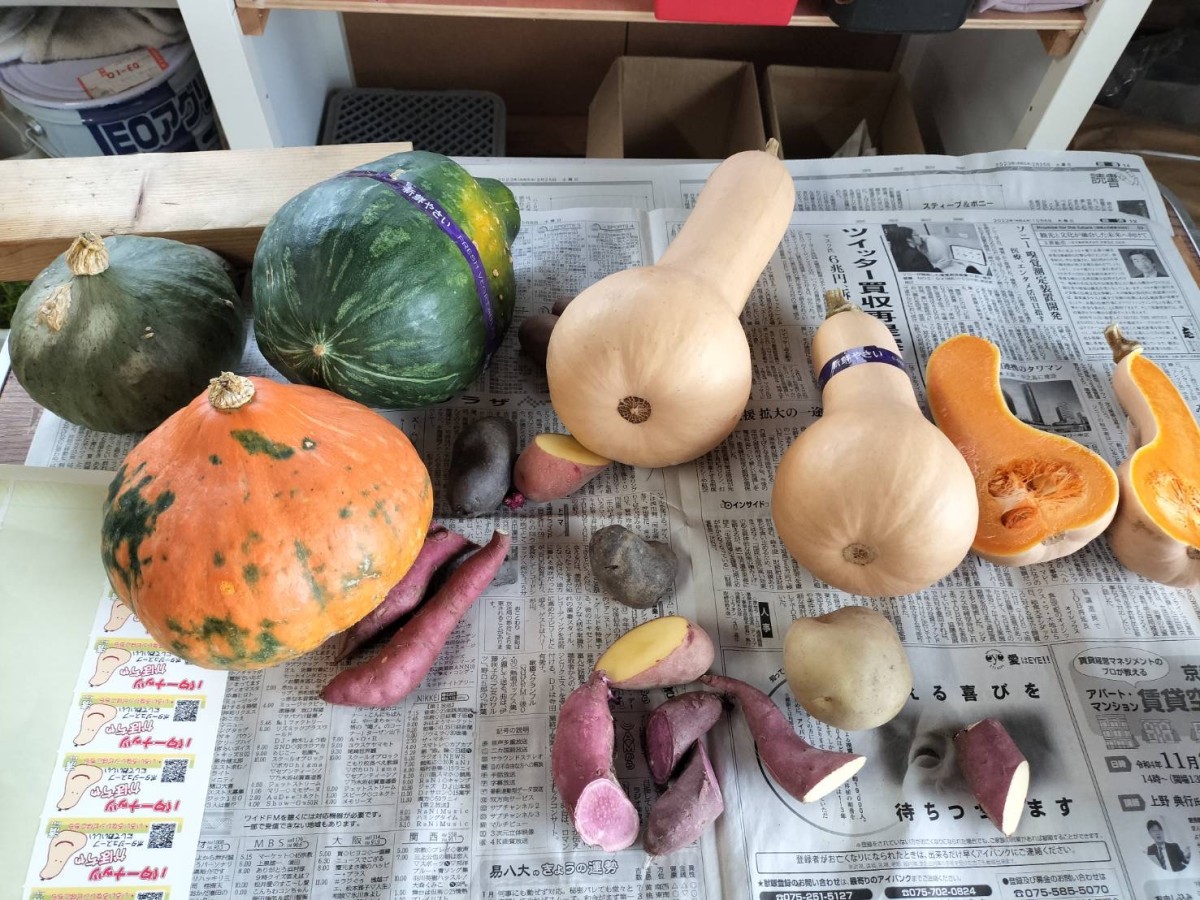 以前、バターナッツかぼちゃでNHKの番組に出演されたことのある清水さんは、周辺の専業農家さんが栽培していない野菜を作るのが楽しくて、嫌になったことは一度もないというお話でした。敷地内の畑にはかぼちゃだけでも数種類。サツマイモ、オクラ、大葉、かもうり他、数えきれない程の野菜が育っていました。「好きこそ物の上手なれ」と言いますが、まさしく清水さんは野菜作りが好きで、楽しみながら、栽培上手な方だと感じ入りました。