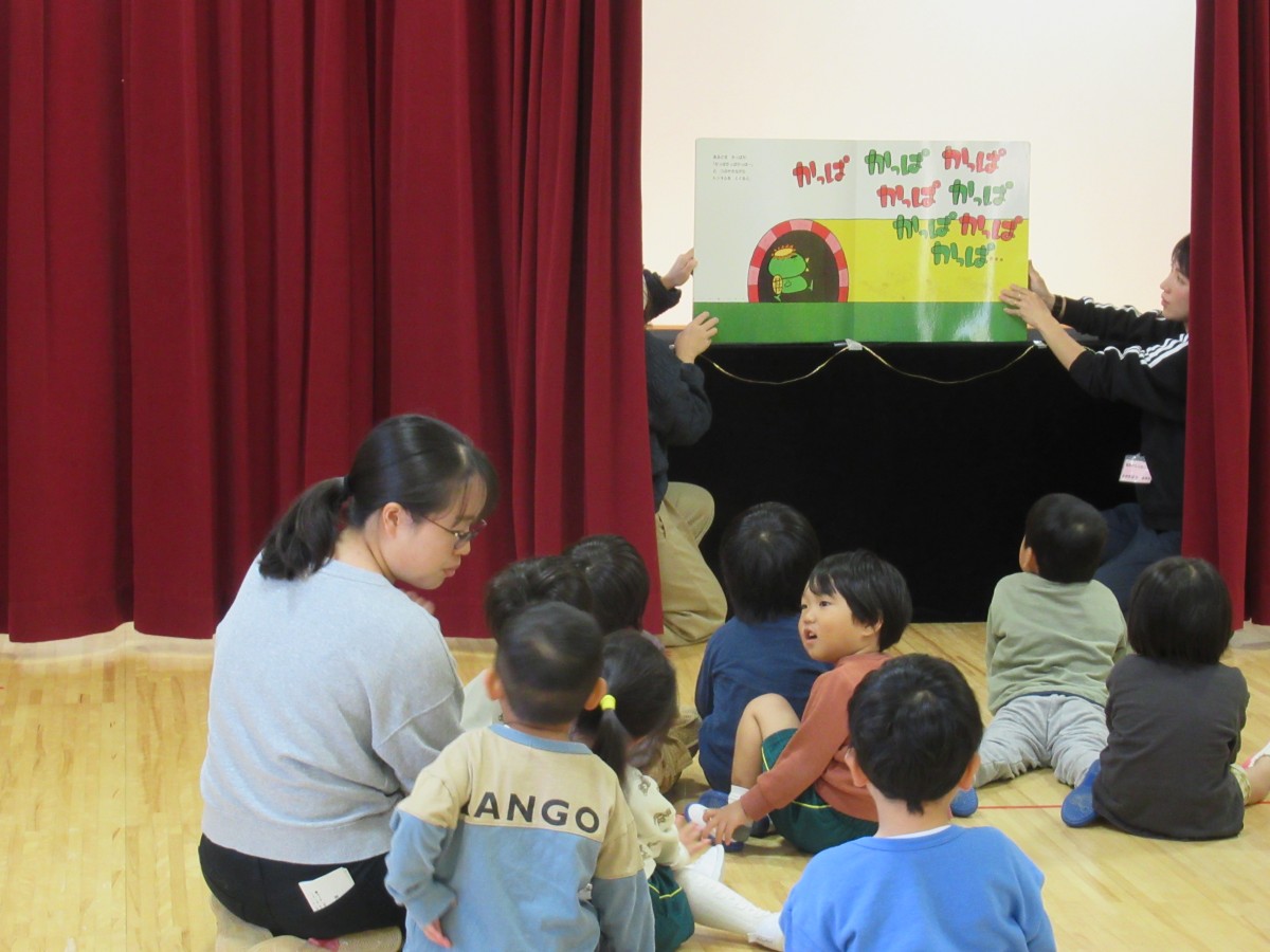 11月16日(木)は、今年度第1回目のお話会を学年ごとに実施しました。アイディアあふれる演出のもと、ゲームや紙芝居、大型絵本などを使ったお話に夢中の子どもたち。思わずにっこり、そして心もほっこりするお話会で、素敵なひと時となりました。