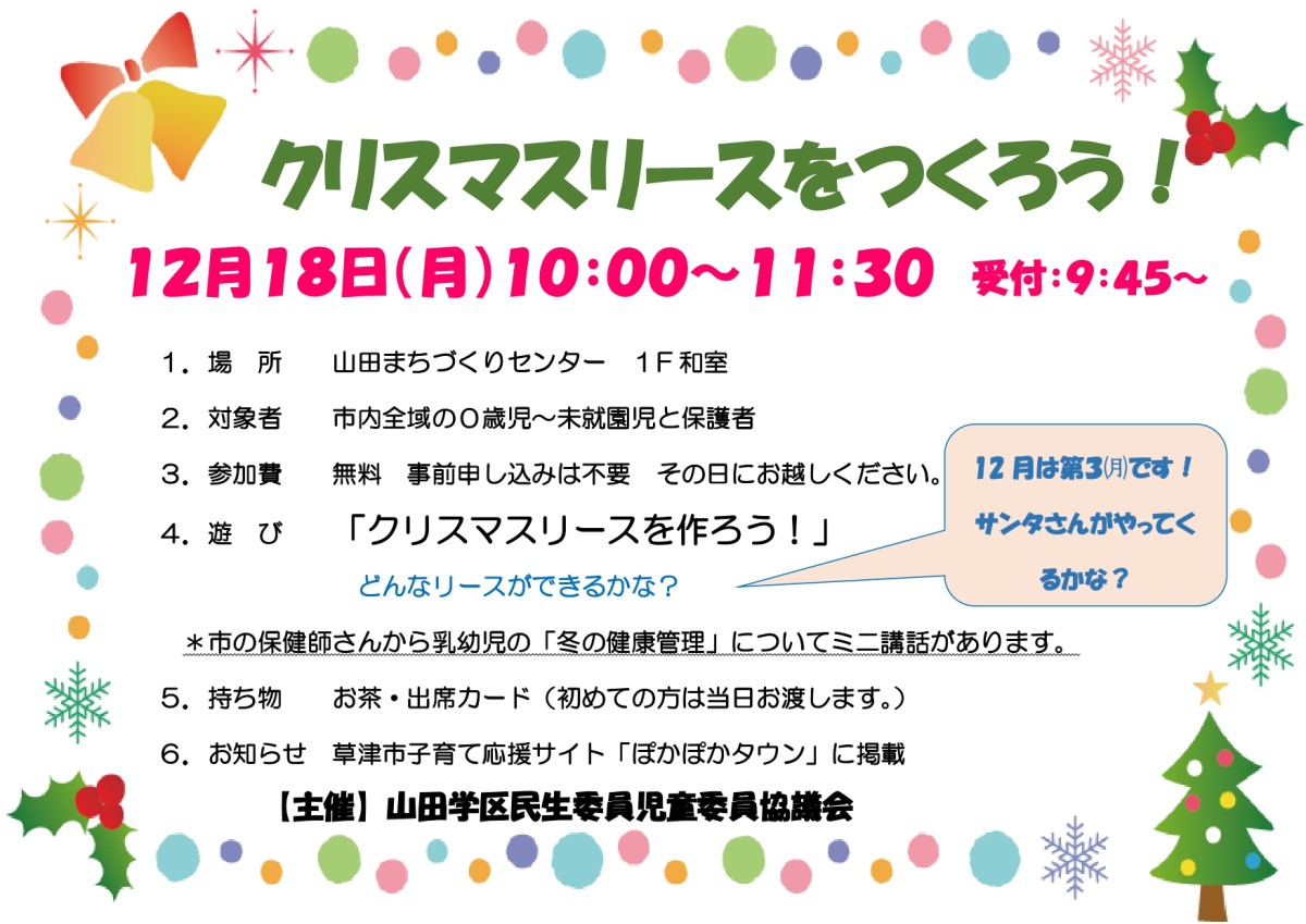 【予告】すくすくランド(12月)「クリスマスリースを作ろう!」