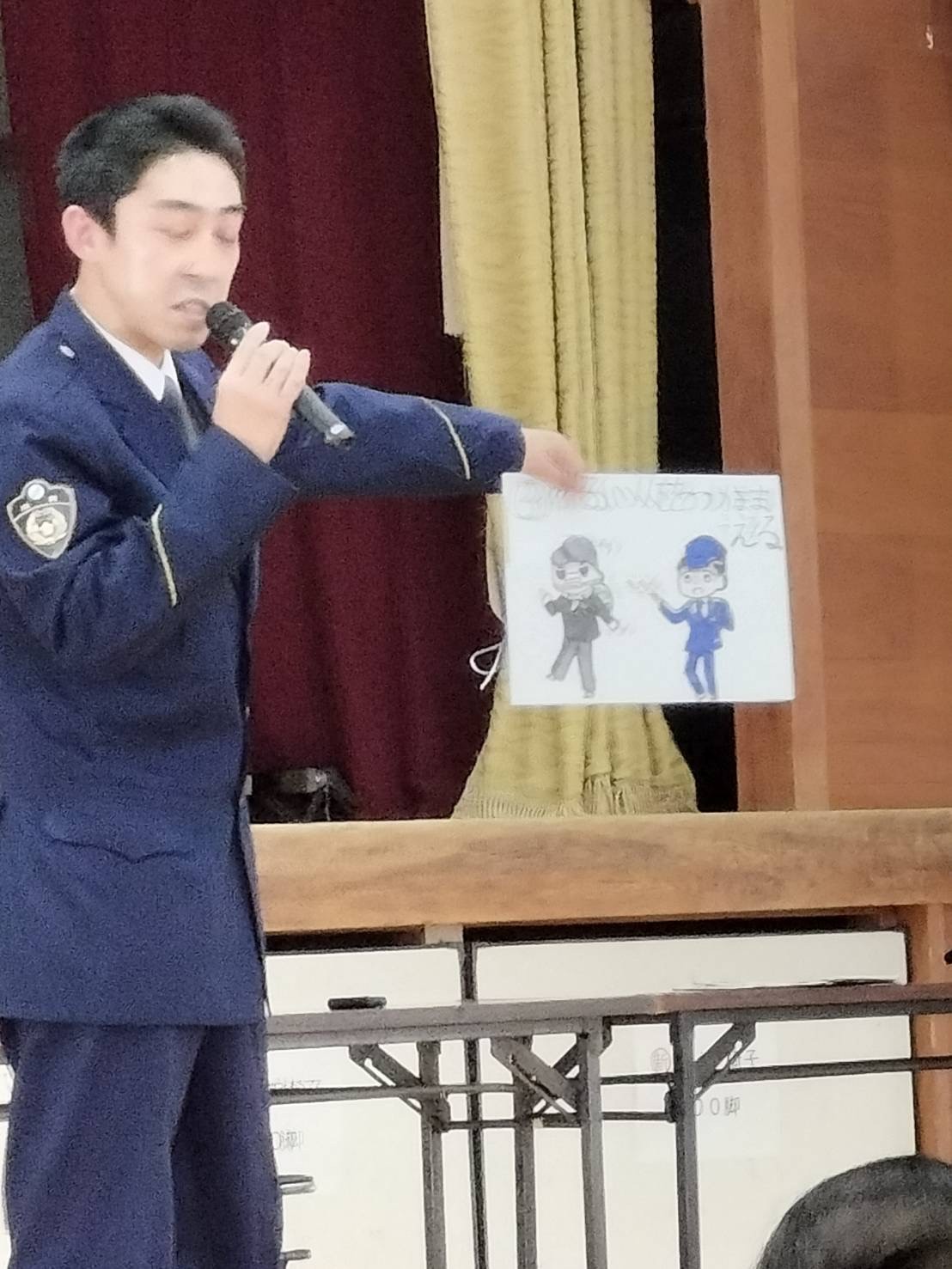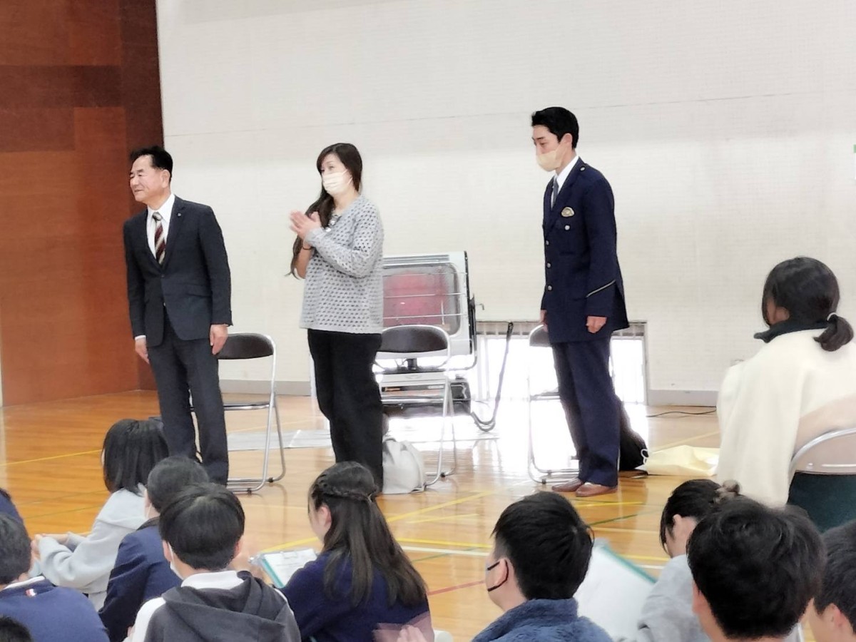 そして3番目に山田交番の玉川洋平警部補にお話をお聞きしました。人助けができる、悪い人を捕まえる、人の役に立ちたいという思いで警察官になったそうです。現在は交番で24時間勤務をして、山田学区内の巡回、朝昼夜のパトロール、そして事故や事件の現場に出動するのが仕事だそうです。好きで入った世界、しんどくても頑張っている。「ありがとう」の言葉が嬉しい。警察官になって良かったと思うと語ってくださる玉川さん。いつも山田を見守ってくださって有難く思います。