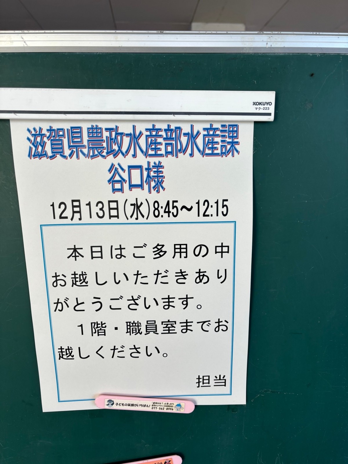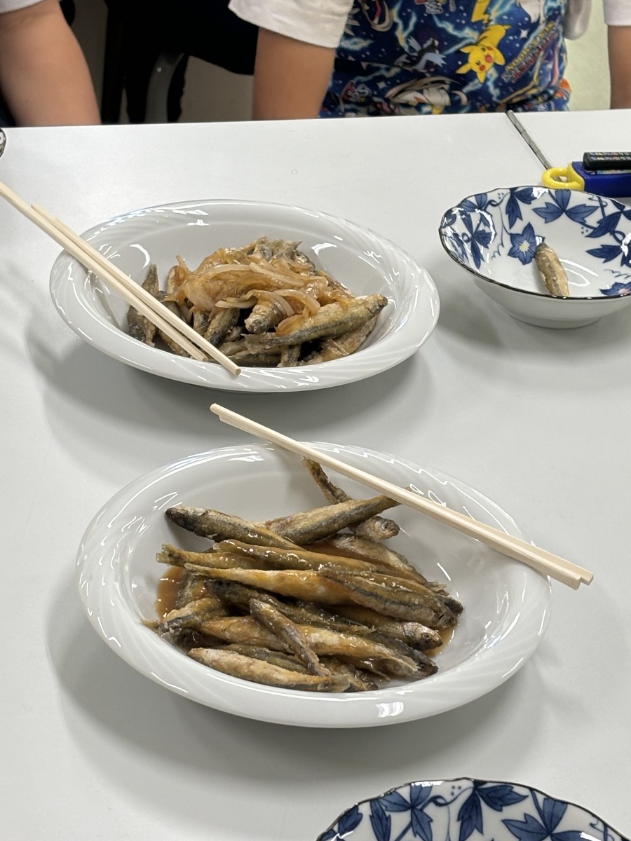 続いて、12/13には実際に湖漁料理を作ってみようという事で調理実習をしました。実習の前には滋賀県水産課の谷口皆人さんから琵琶湖の魚について教えていただき、ホンモロコは漁獲量は増えているものの消費量が減っている事を知りました。つまり食べる量が減ってきているそうです。今回子ども達が考えたレシピを役に立ててもらって少しでもたくさんの人が湖魚料理を食べられるといいですね。時間の最後にはできたてのホンモロコの料理をみんなで食べました。子ども達はみんな満面の笑みを浮かべていました^_^