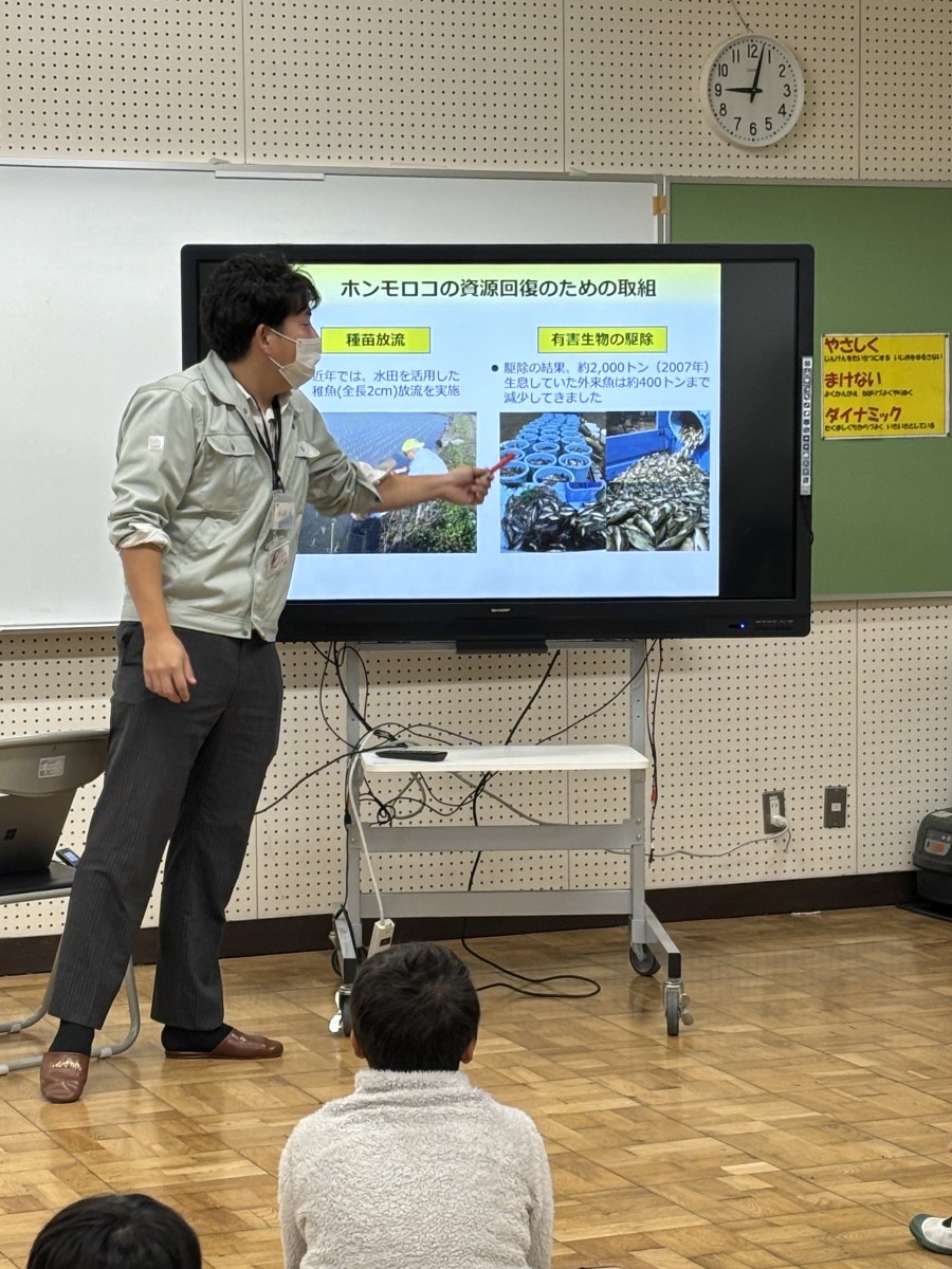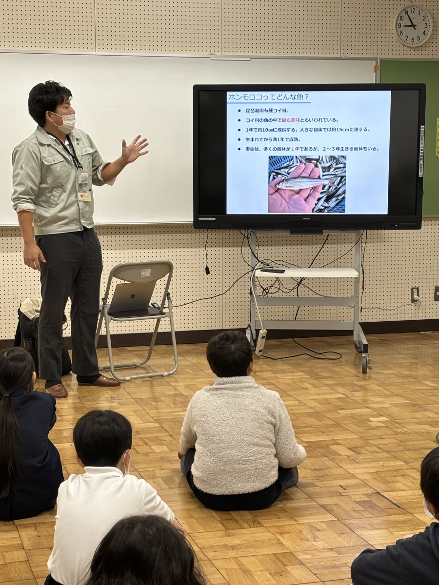 山田小学校4年生が学習を続けている湖魚についてさらに学習を深めました。