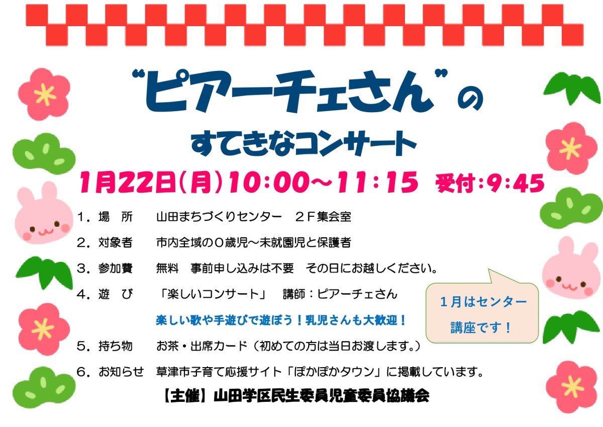 1月のすくすくランドは「ピアーチェさんのすてきなコンサート」です![]()
