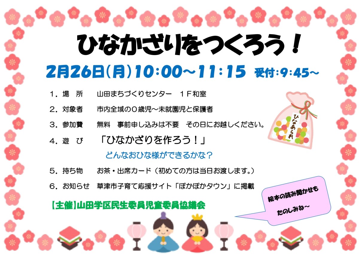 【予告】すくすくランド(2月)「ひなかざりをつくろう!」