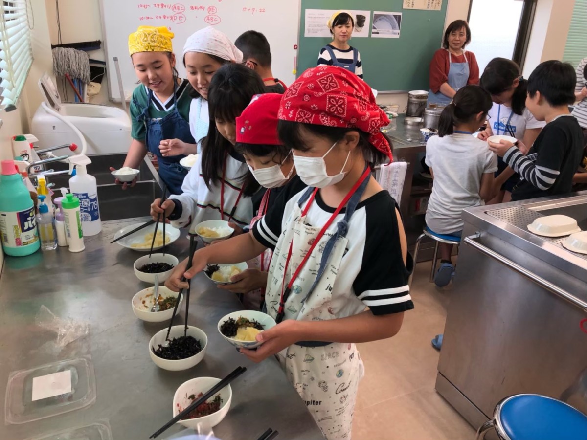 矢橋帰帆島での野外飯ごう体験を予定していましたが、残念ながら天候不良のため、山田まちづくりセンターの調理室で行いました。