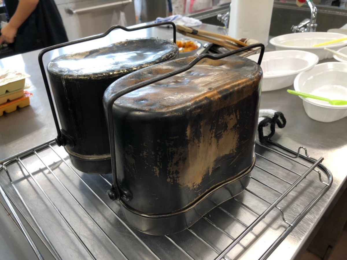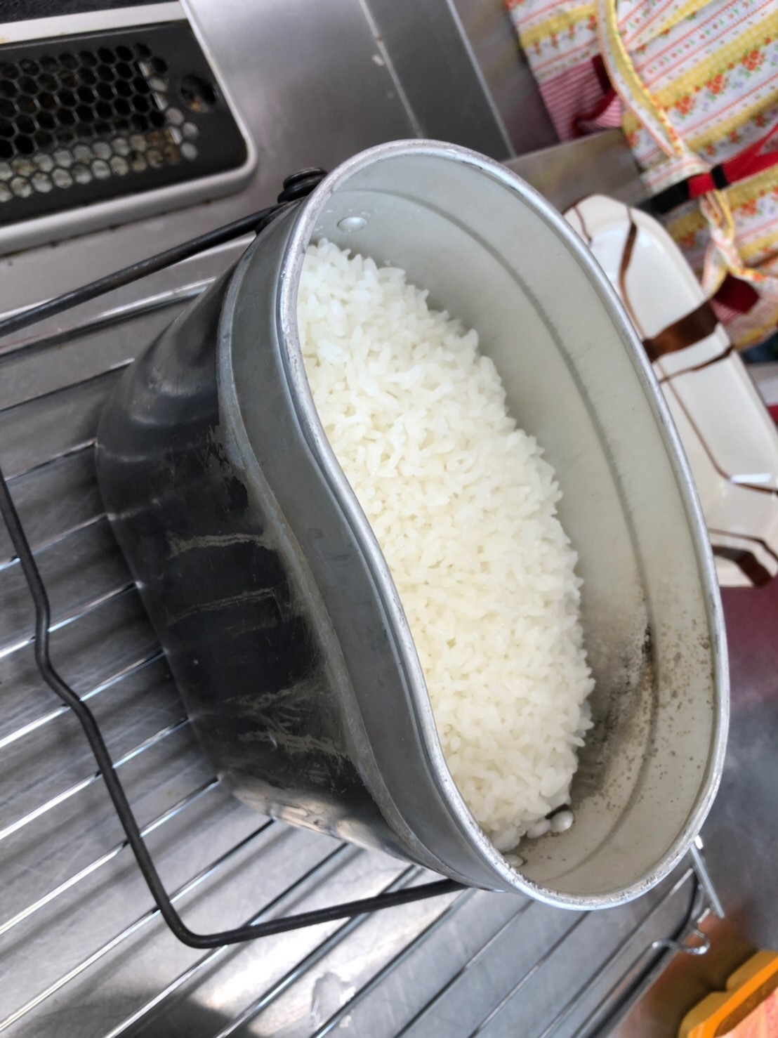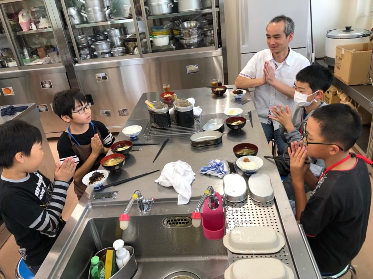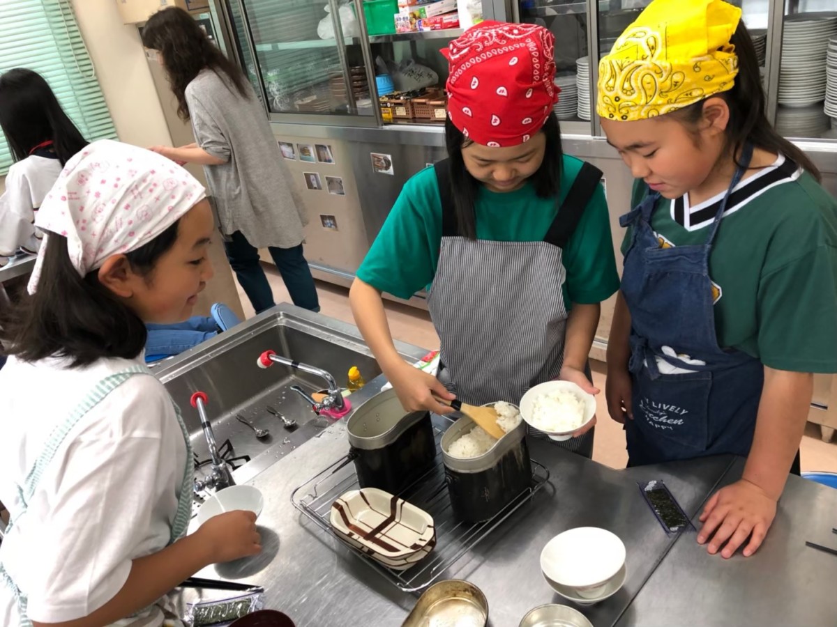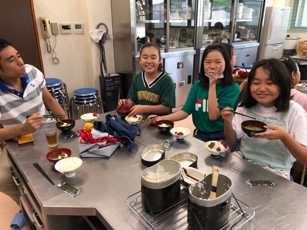 また、飯ごう体験では、飯ごうの音、米の匂いで、炊き上がりを判断しました。炊飯器に頼らず、五感を使って炊き上げたお米の味は格別!!お味噌汁やご飯のおともと一緒にみんな何杯もお代わりをして、お米の味を楽しみました。