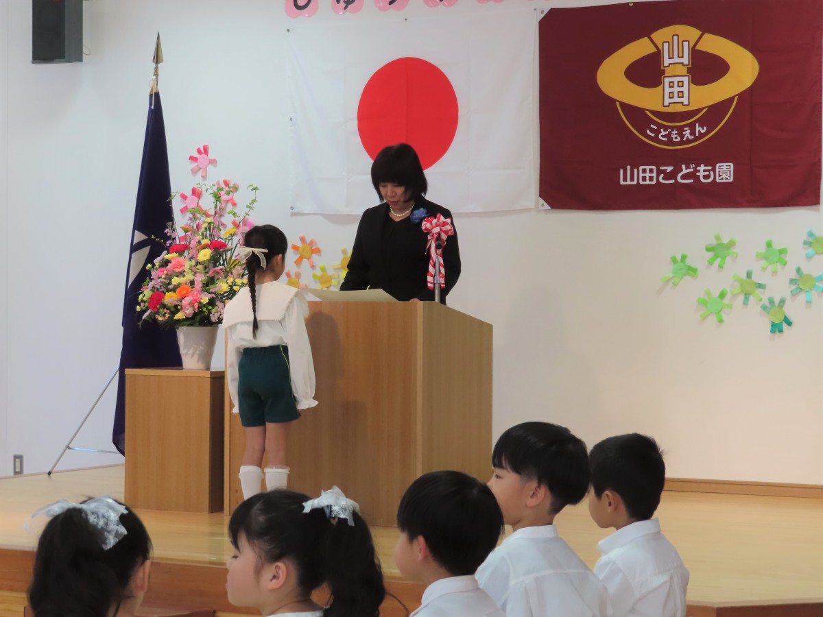 3月15日、山田こども園の令和5年度(第5回)修了証書授与式を行いました。