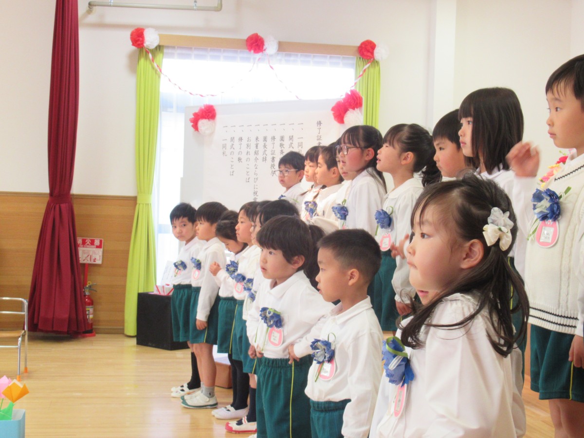 春のやわらかな陽ざしのもと、5歳児22名は、これから始まる未来に期待を膨らませながら、笑顔と涙で本園を巣立って行きました。コロナ禍の影響を受けながらの3年間を過ごした子どもたちでしたが、園生活を十分に楽しみ、笑顔あふれた日々が走馬灯のようによみがえってきます。地域の皆様には、様々な交流や日々の触れ合いの中で、いつも温かかく子どもたちを見守り応援していただいたこと、心から感謝申し上げます。