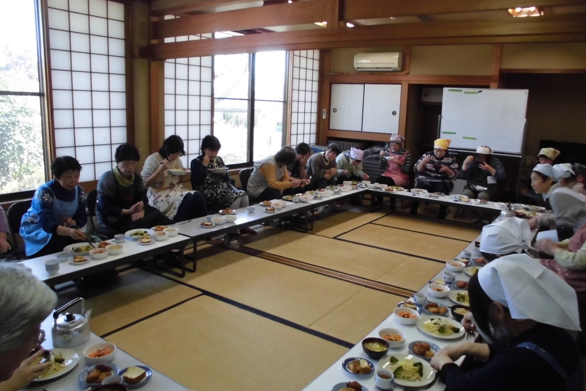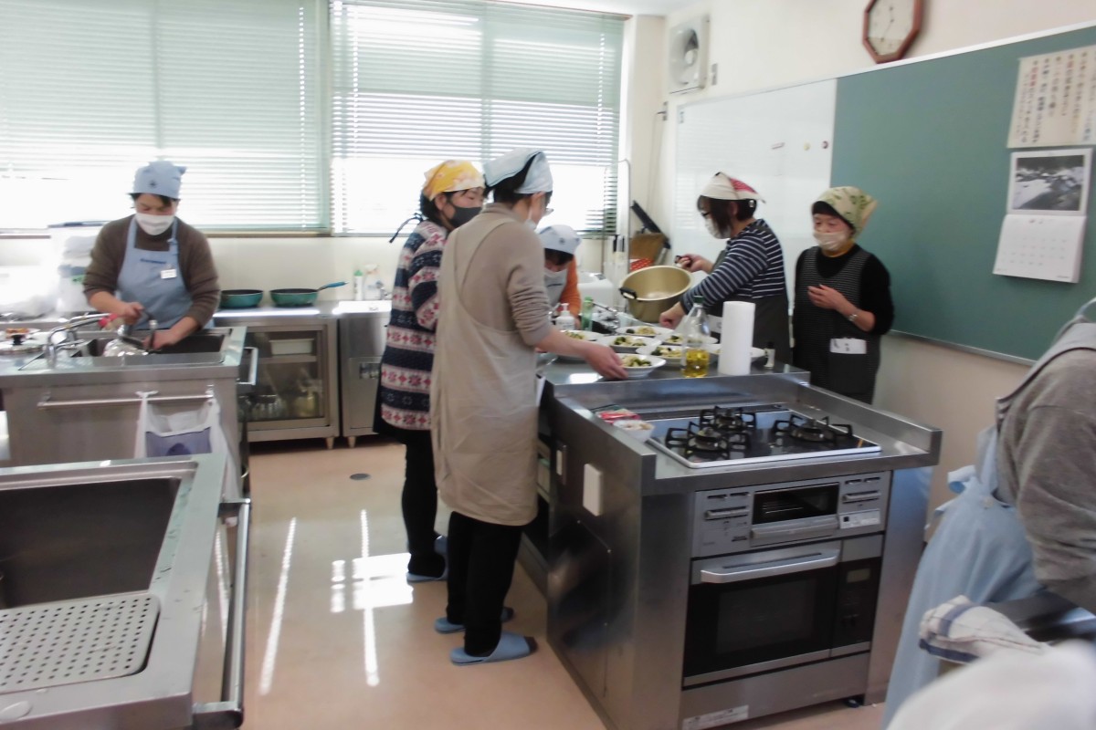 最初にお話をさせていただいて、その後調理室に移動して調理説明をさせていただき、参加者の皆さんと調理を行いました。