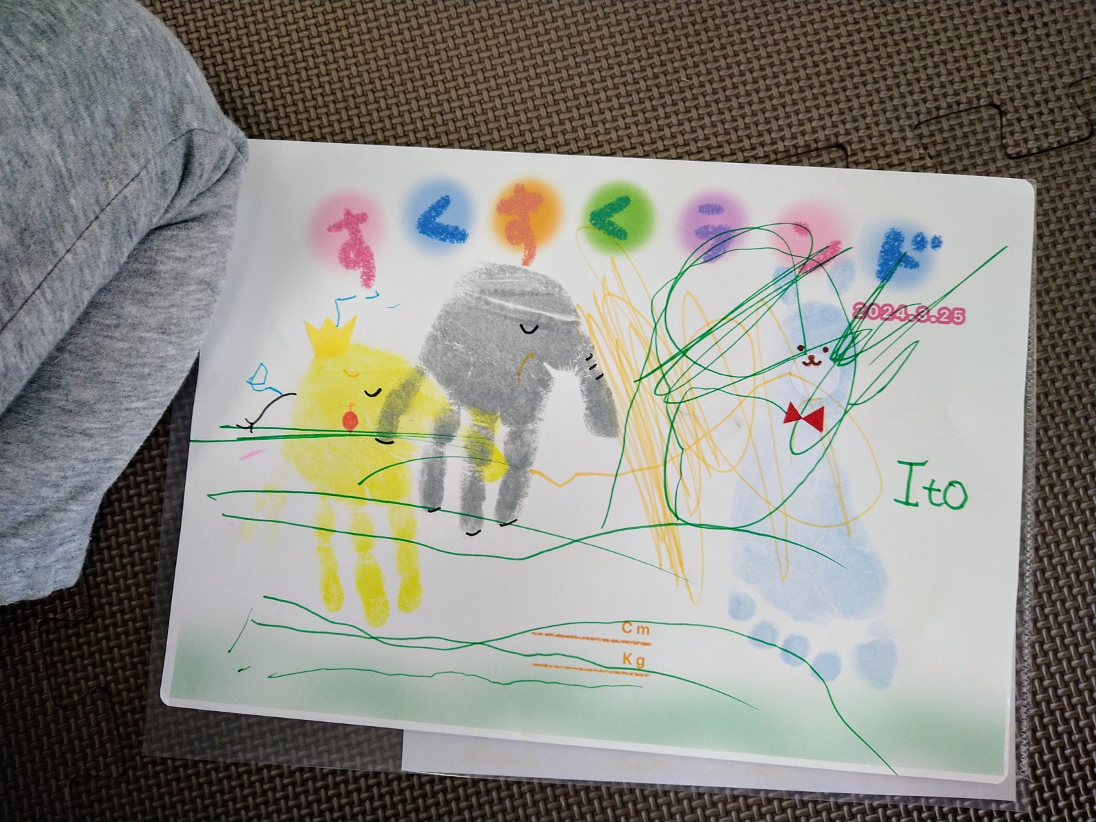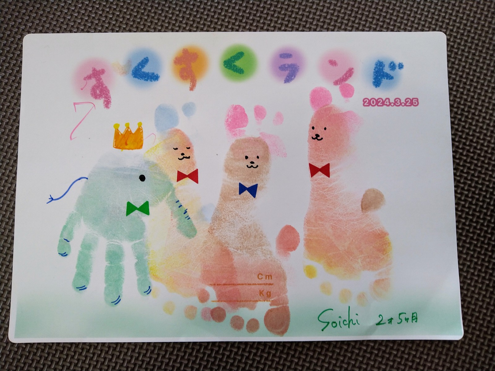 「すくすくランド」と書かれた台紙に「足形ぺったん!手形ぺったん!」と可愛い形が写っていきます~