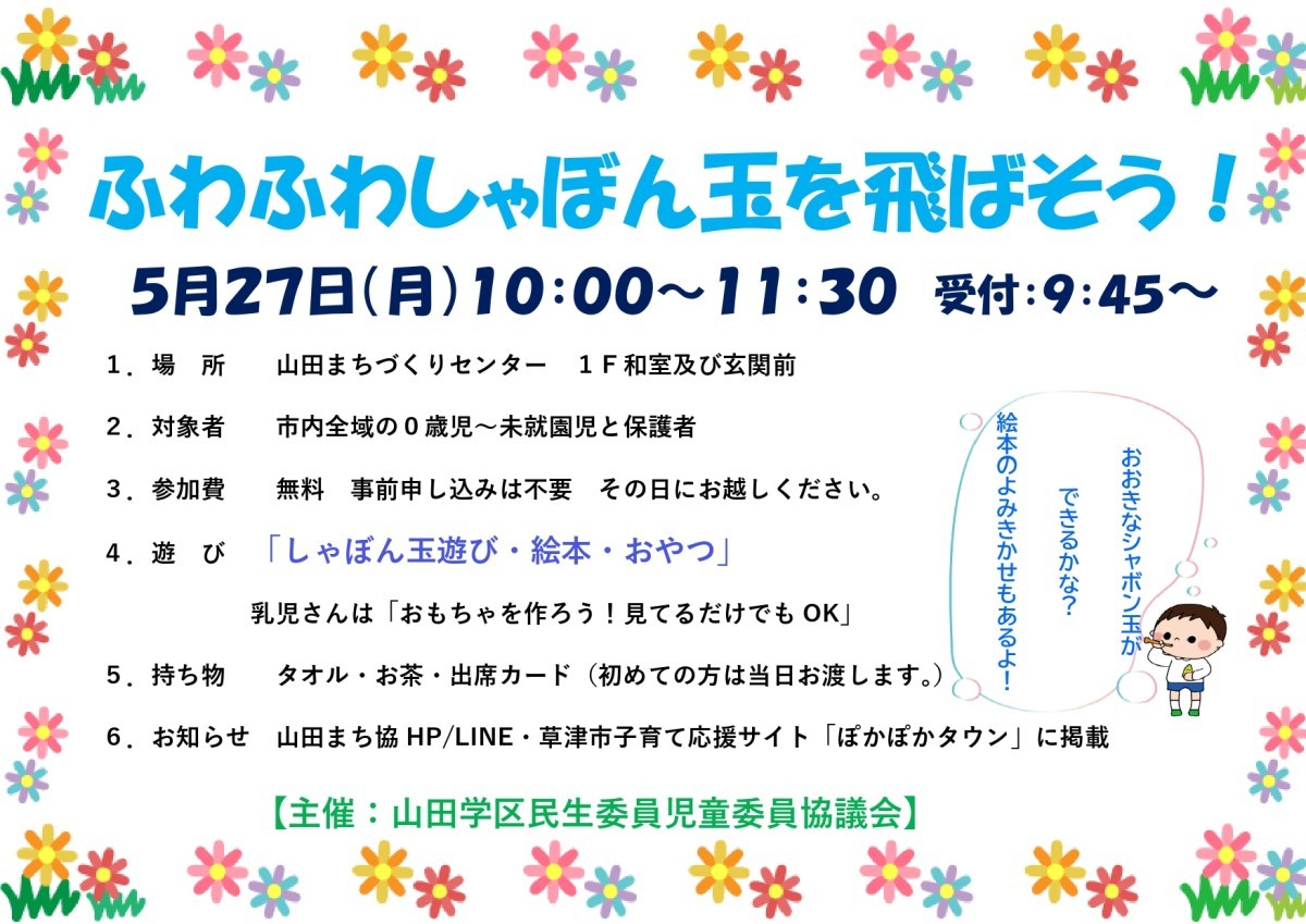 【案内】すくすくランド5月「ふわふわしゃぼん玉を飛ばそう!」