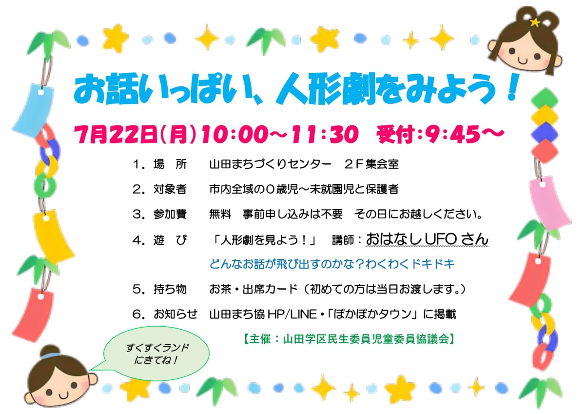 【案内】すくすくランド(7月)「お話いっぱい、人形劇を見よう!」
