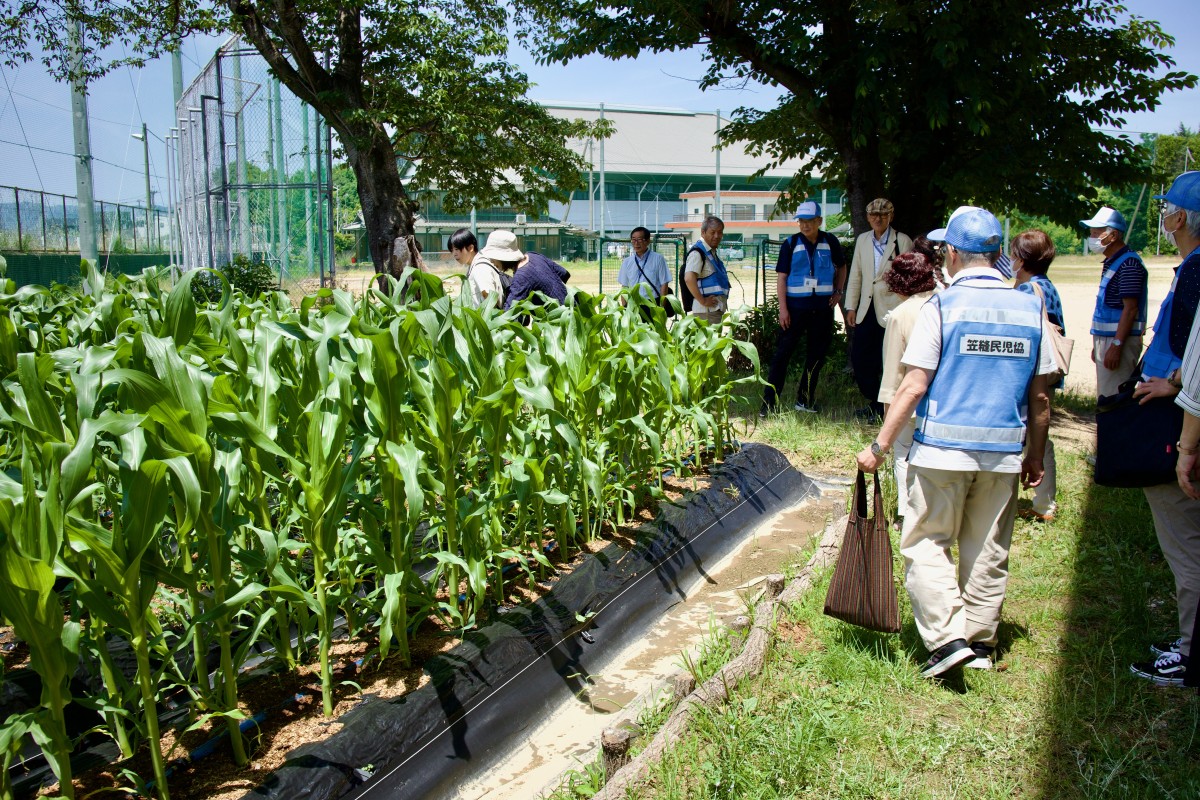 その後、見学した「松原ファーム」には、ホワイトコーンがとても立派に育ち、第2ファームではサツマイモや黒枝豆が生き生きと