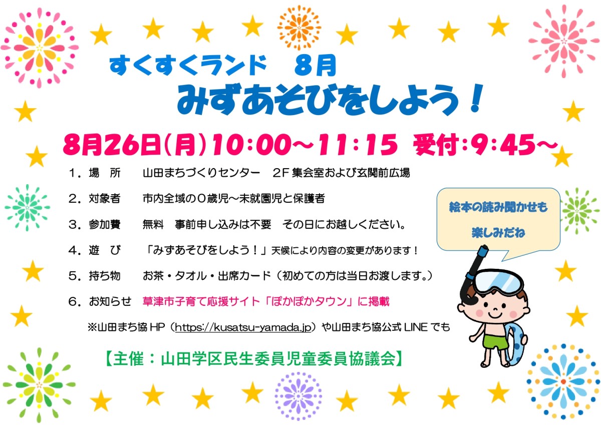 8月26日のすくすくランドは「気持ちいいね、水遊びをしよう!」です![]()