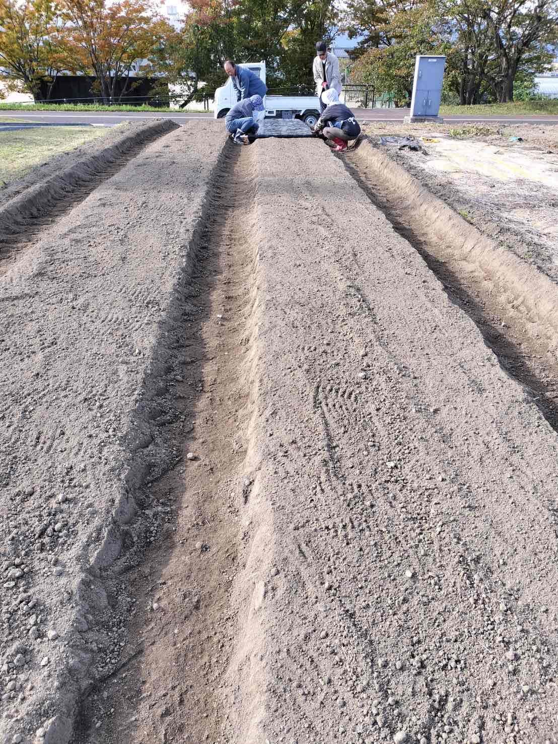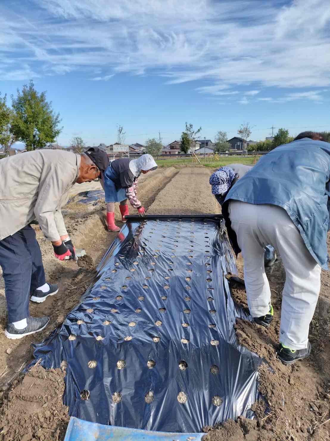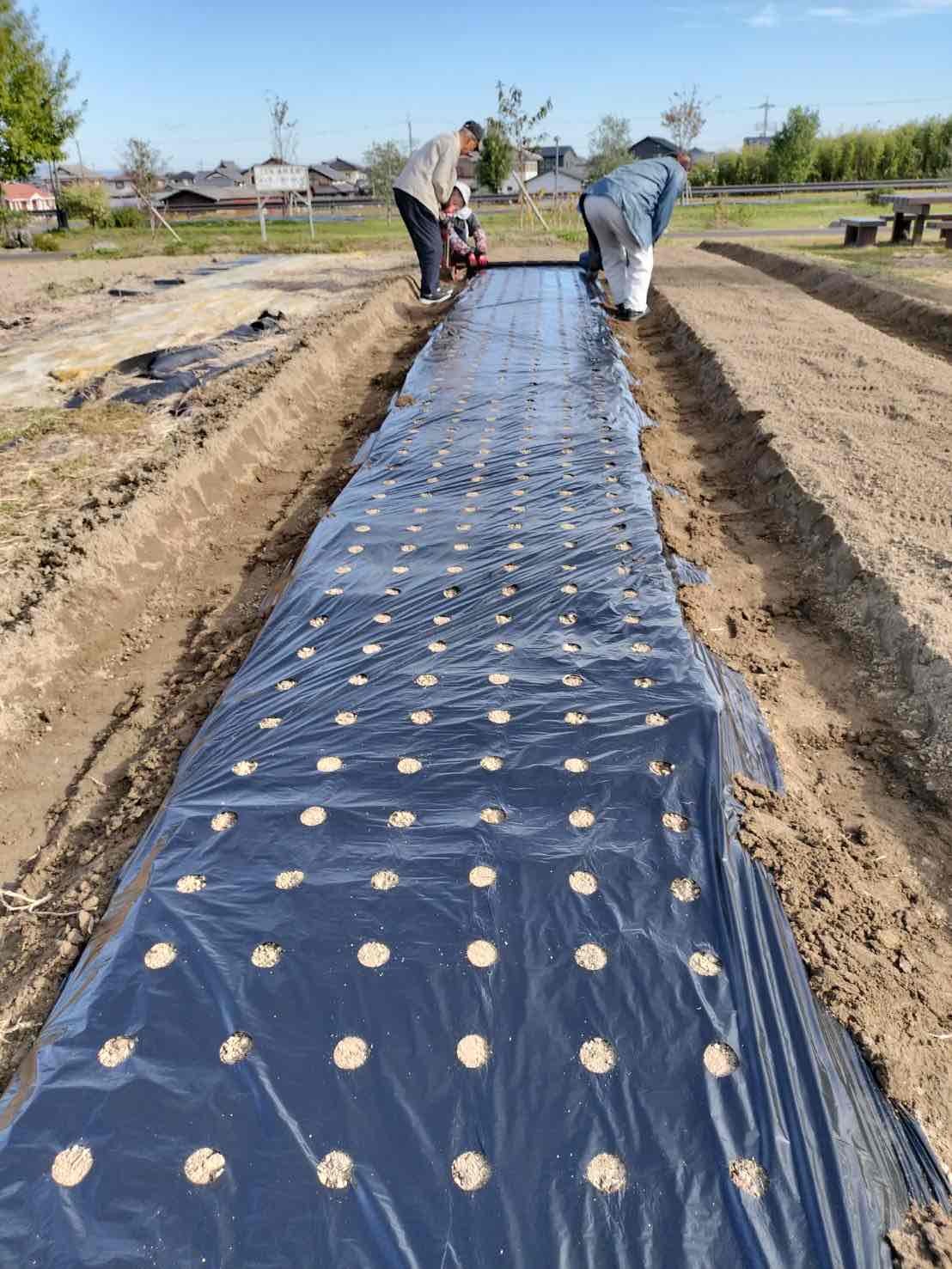 11月11日,澄み渡る青空の下、2年生の子ども達が玉ねぎの苗を植えました。この日までにai彩ひろばのスクールガーデンの畑はきれいに耕され、畝をつくり、玉ねぎ用のマルチをはり、子ども達がやってくる頃には玉ねぎ苗が準備されていました。