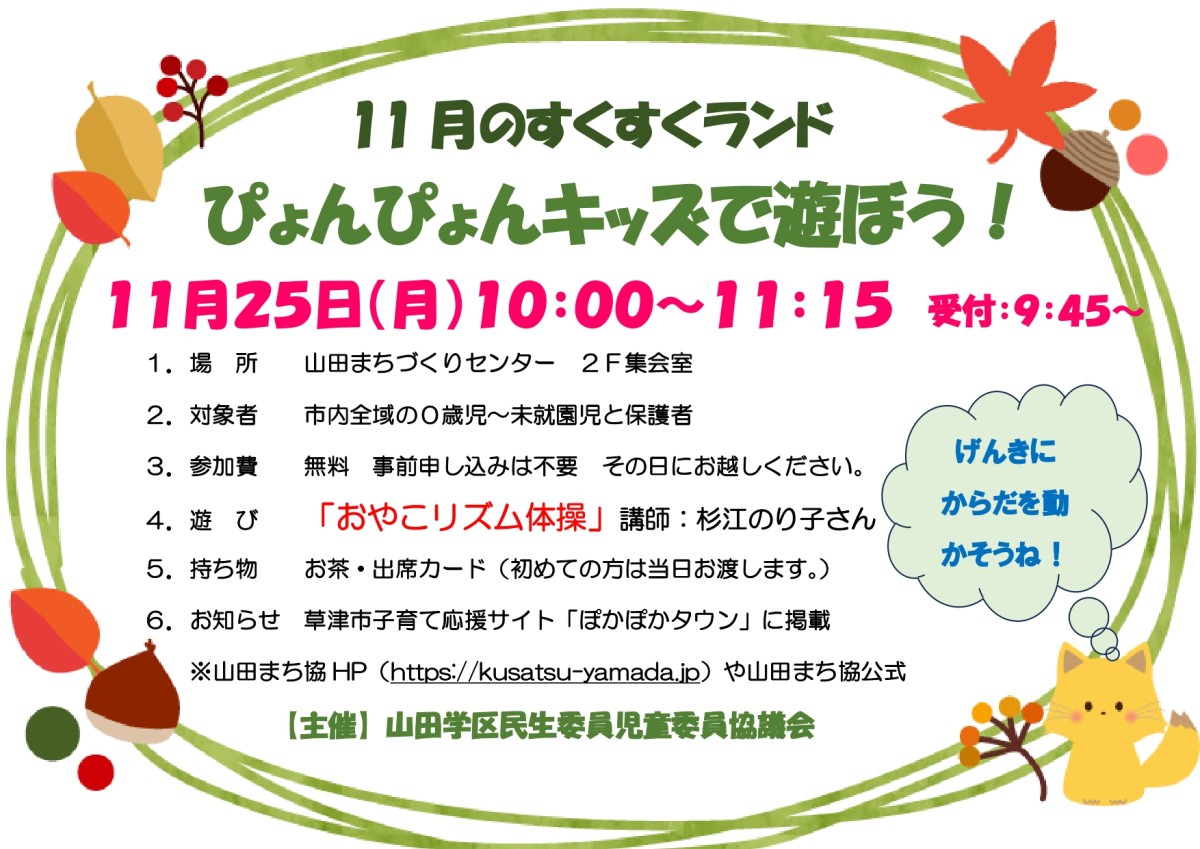 「ぴょんぴょんキッズで元気に遊ぼう!」11月のすくすくランドを開催します![]()