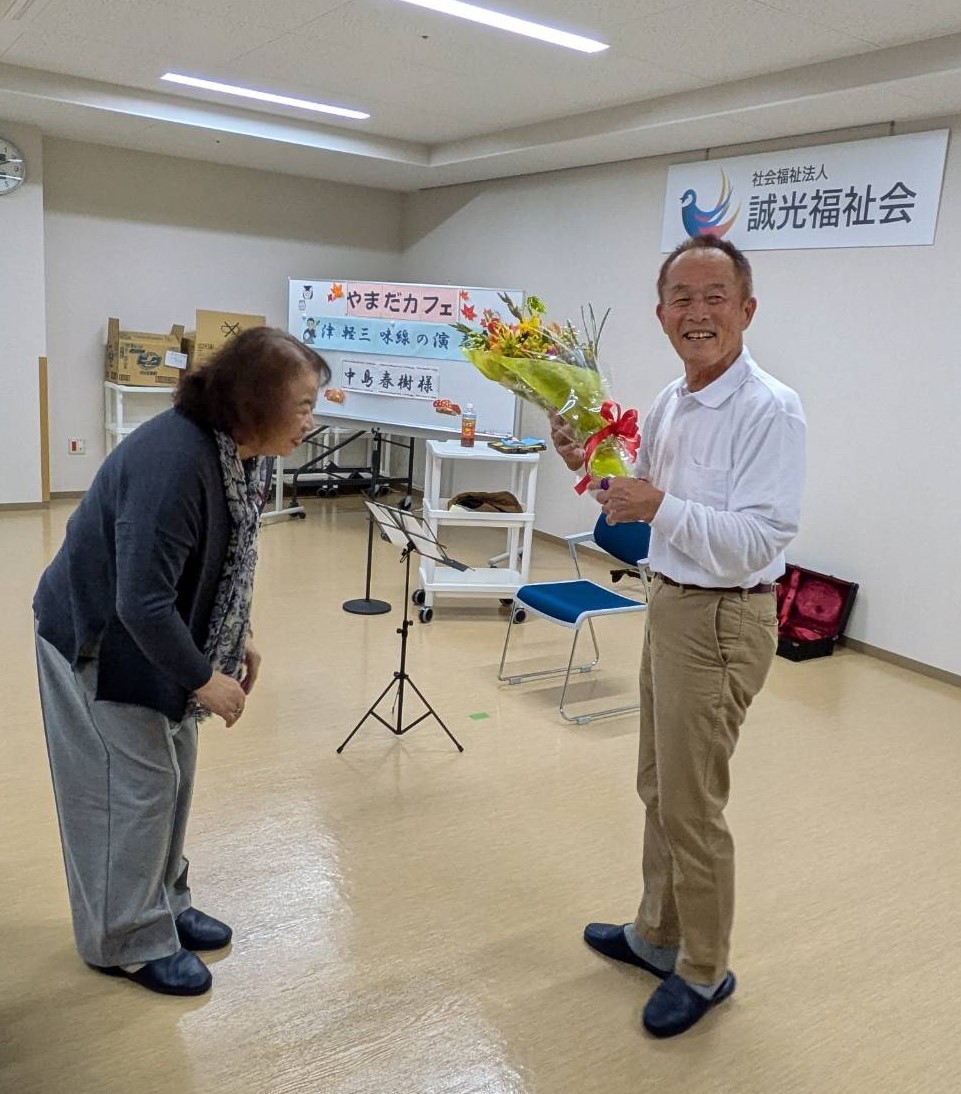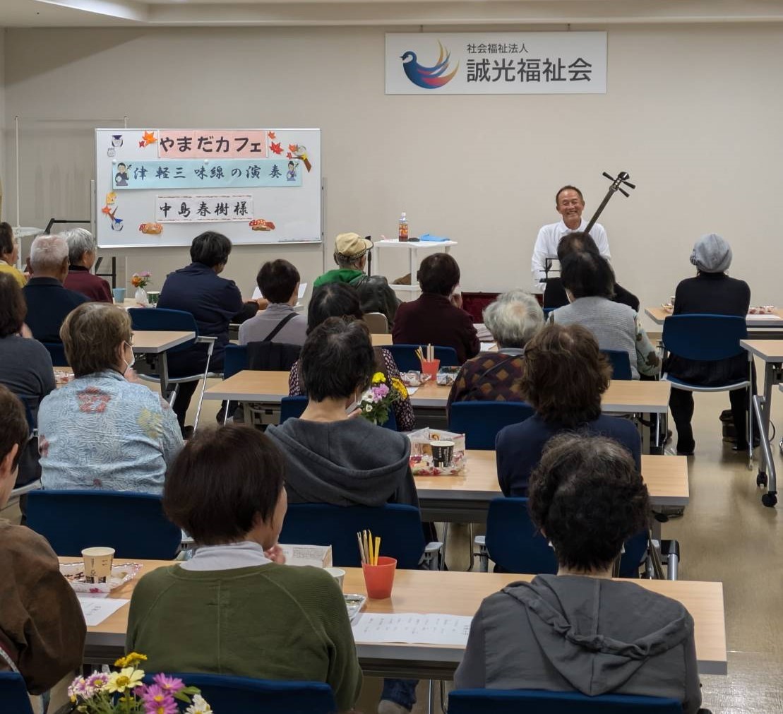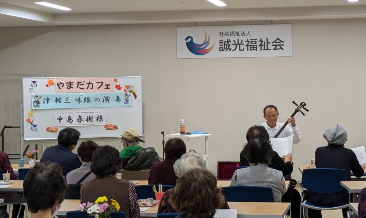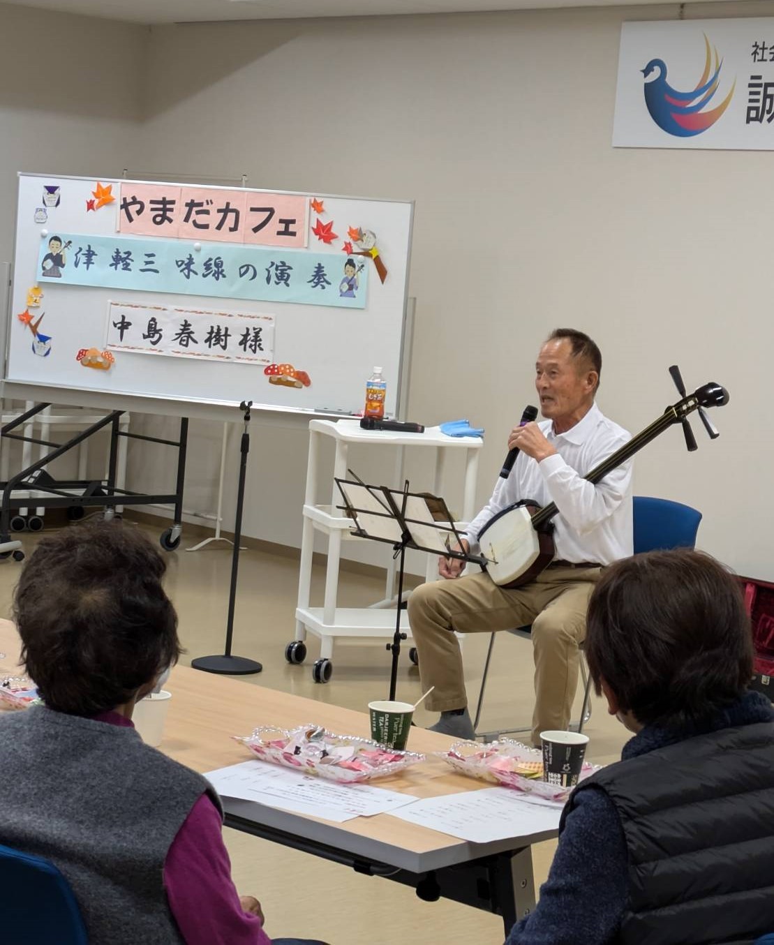 10年程前から「津軽三味線」を趣味で始められ、やまだカフェには今回で2回目の出演です。